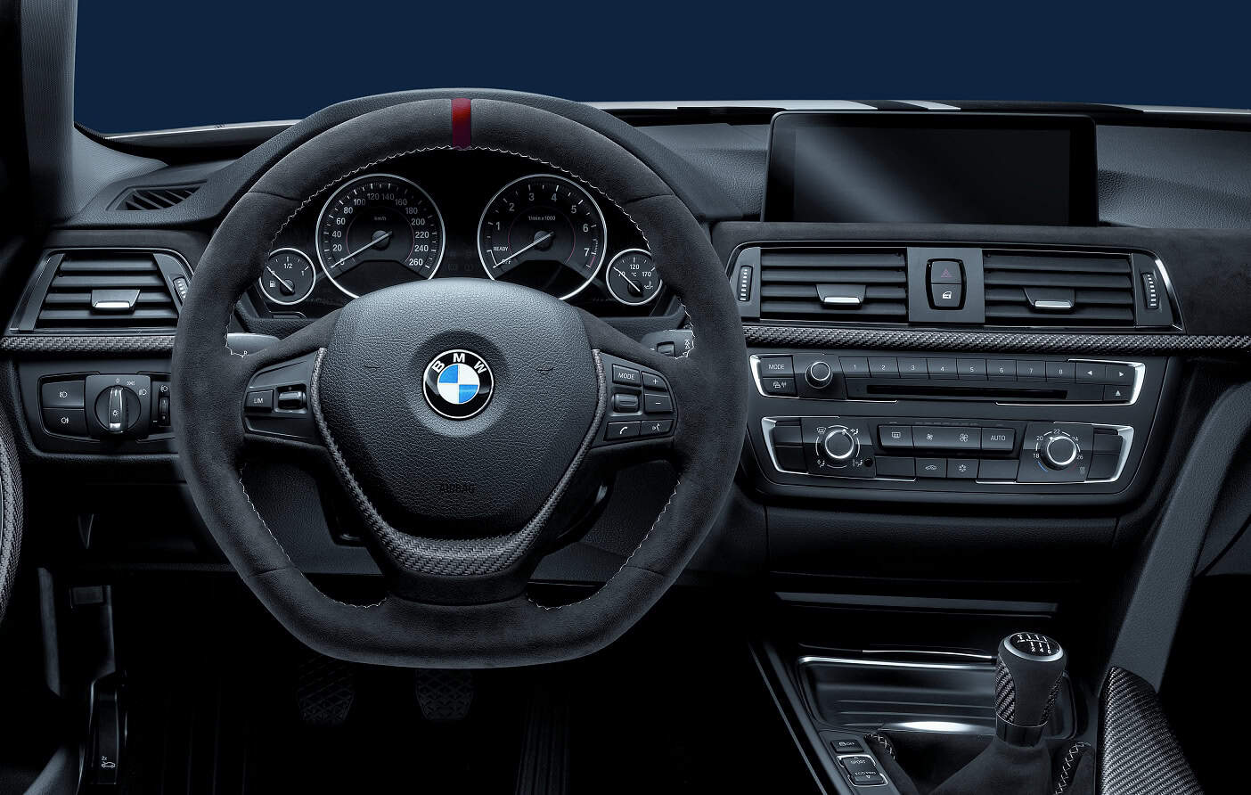 BMW M Performance has made available a seven piece carbon fiber and Alcantara interior trim set inspired by the world of Motorsport. The carbon fiber trim pieces are manufactured with a unique “open-pore” finish. This new technology offers the driver direct contact with high-tech carbon fiber materials. In contrast to the high gloss version, the carbon fiber in this instance is sealed with a special silk matt protective lacquer which allows for the structure and texture of the carbon fiber to remain tactile. The Alcantara trim on the dashboard is branded with the M Performance trademark to accentuate the sportiness of the interior.
