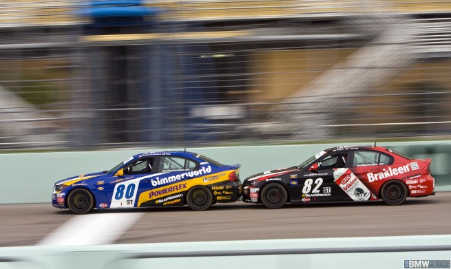 Homestead is just south of Miami and one of the final stops before you get to the Florida Keys. Nestled in this small town in South Florida is a NASCAR Speedway and inside that is a nice little roval. This roval is where the boys of Grand-Am and the supporting Continental Tire series will do battle. Thursday and Friday started with what one comes to expect in Miami. Bright sunshine and lots of blue skies. The tides were quickly turned and the rain started and never let up. Most teams chose to run in the wet to tune their setups as most were banking on a wet race. Those that went this route were rewarded as both races were run mostly in the wet.