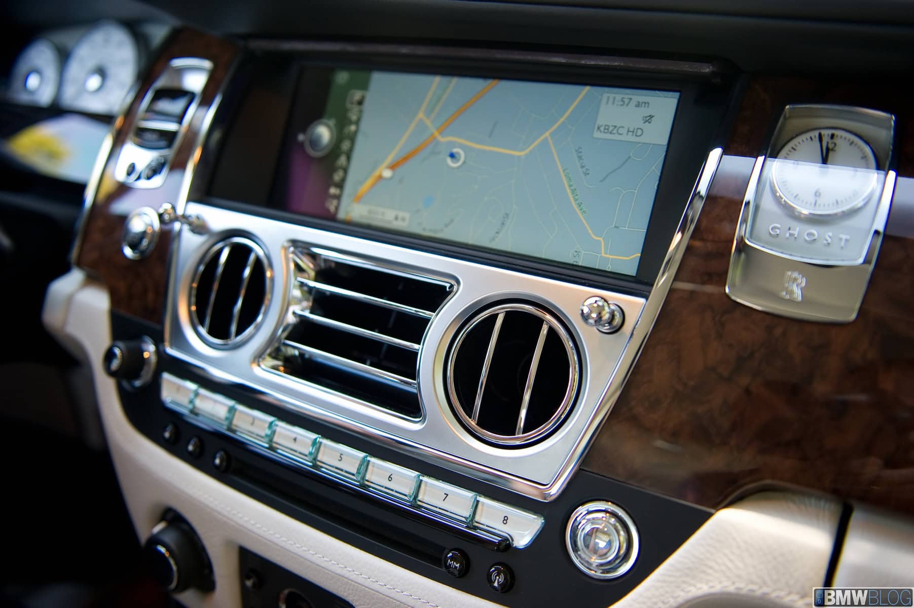 Inside, the Ghost continues the theme of blending Rolls traditional details with avant-garde technology and design. The steering wheel is thin and large; the gear selector is nicely located on the steering column, and the dash sports vast surfaces of polished wood. Exceptional leather and wool add to the elegant surroundings. The craftsmanship used in building the car is unrivaled. However, poke a little and you’ll discover copious amounts of technology hiding under the elegant wood: navigation and entertainment systems of the highest quality offer the latest features. The car is equipped with and impressive array of luxury gadgets: night vision with human shape recognition, heads up display, active cruise control and lane departure warning systems.
