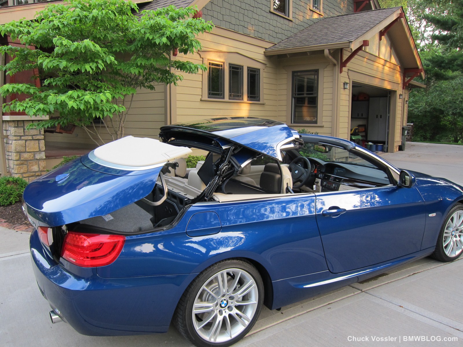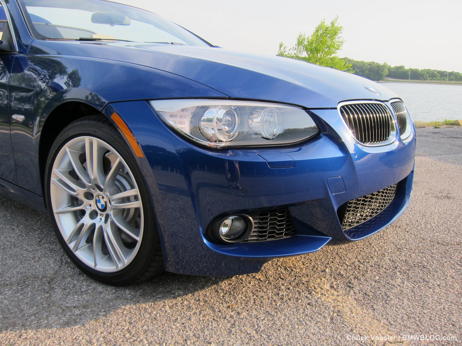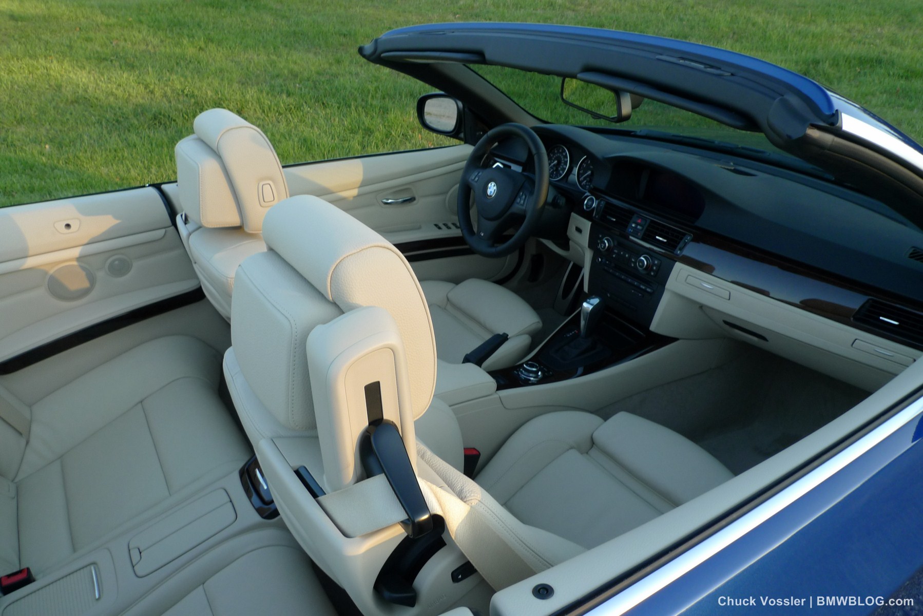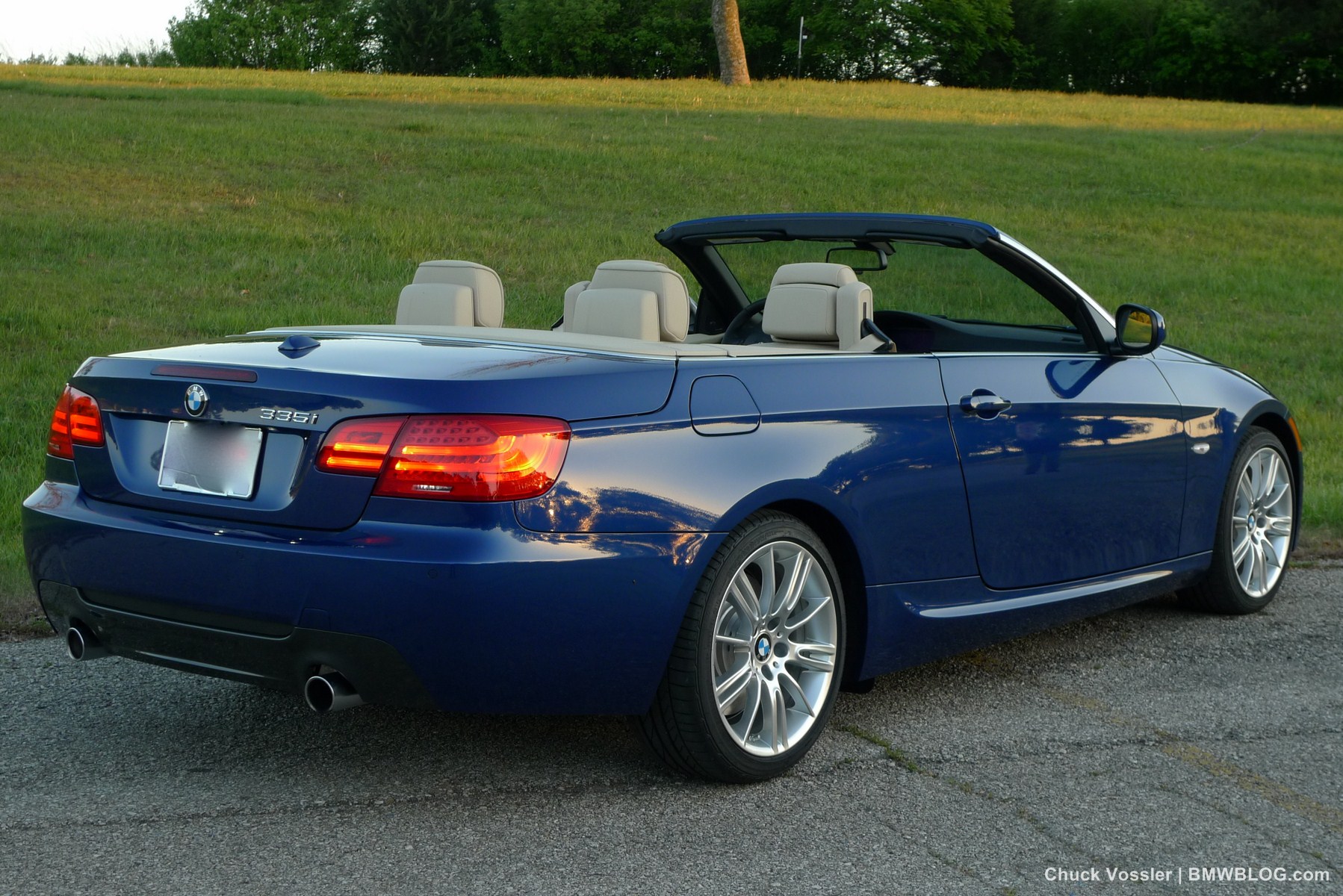Ah summertime! What better time is there than this to drive a BMW convertible? Sometimes, we in the automotive press, spend too much time talking about the latest and greatest, forgetting about the here and now. This realization dawned on me while taking in the stunning view of the low slung, wide M-Sport package 2012 BMW 335i Convertible, top down in the shimmering sunlight next to the lake in LeMans Blue Metallic with its cream beige Dakota leather.