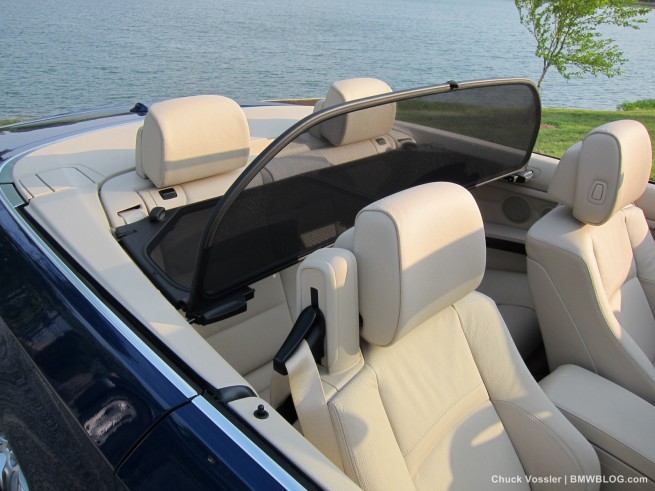 BMW also offers a a special wind deflector that helps reduce air swirling within the cabin. At highway speeds with windows up and top down, the wind deflector was maybe responsible for 20-30% less wind on my head, but this is of course non-scientific.