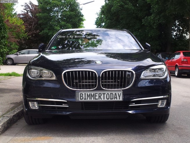 More real life photos of the facelifted BMW 7 Series surface from Germany. A completely undisguised prototype was seen on the roads of Munich ahead of its July market launch. Both the F01 and F02 models will go through the lifecycle refresh delivering some new features and updated design.