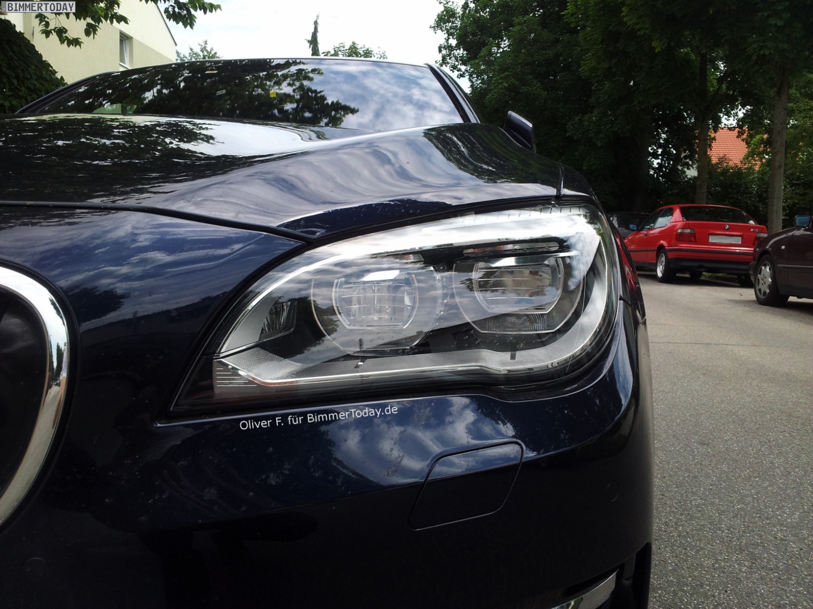 One of the biggest exterior changes comes from the front where now the flagship 7er gets “squarish” LED corona lights with an LED turn signal indicator placed in the headlight. Each headlight contains 8 LEDs.
