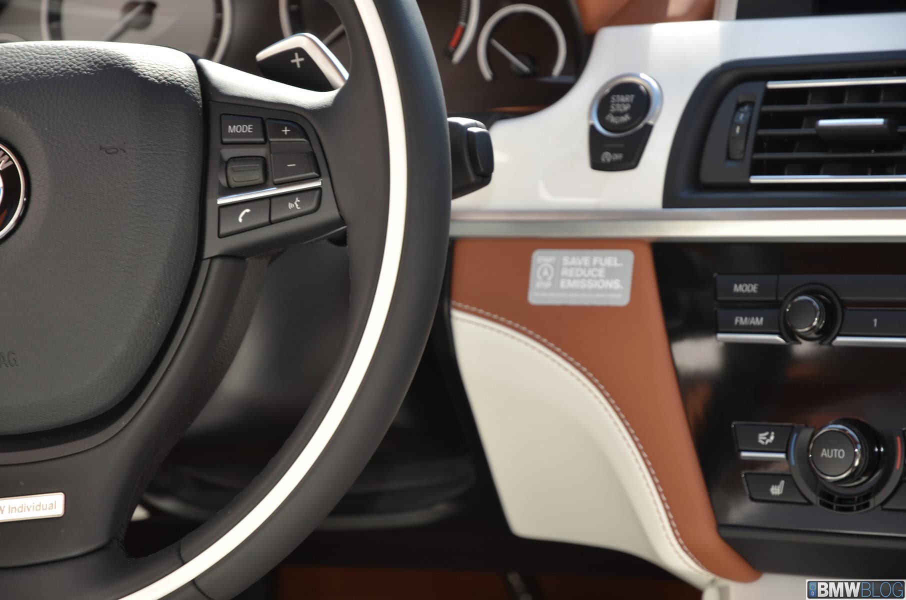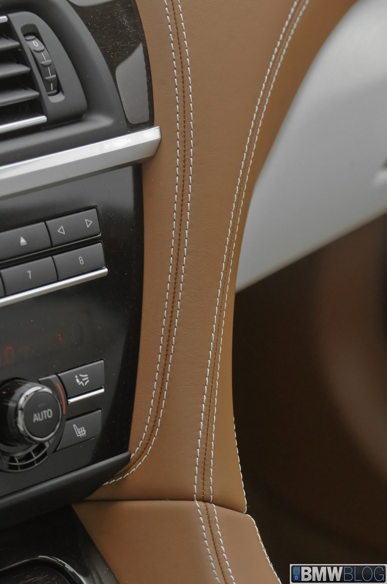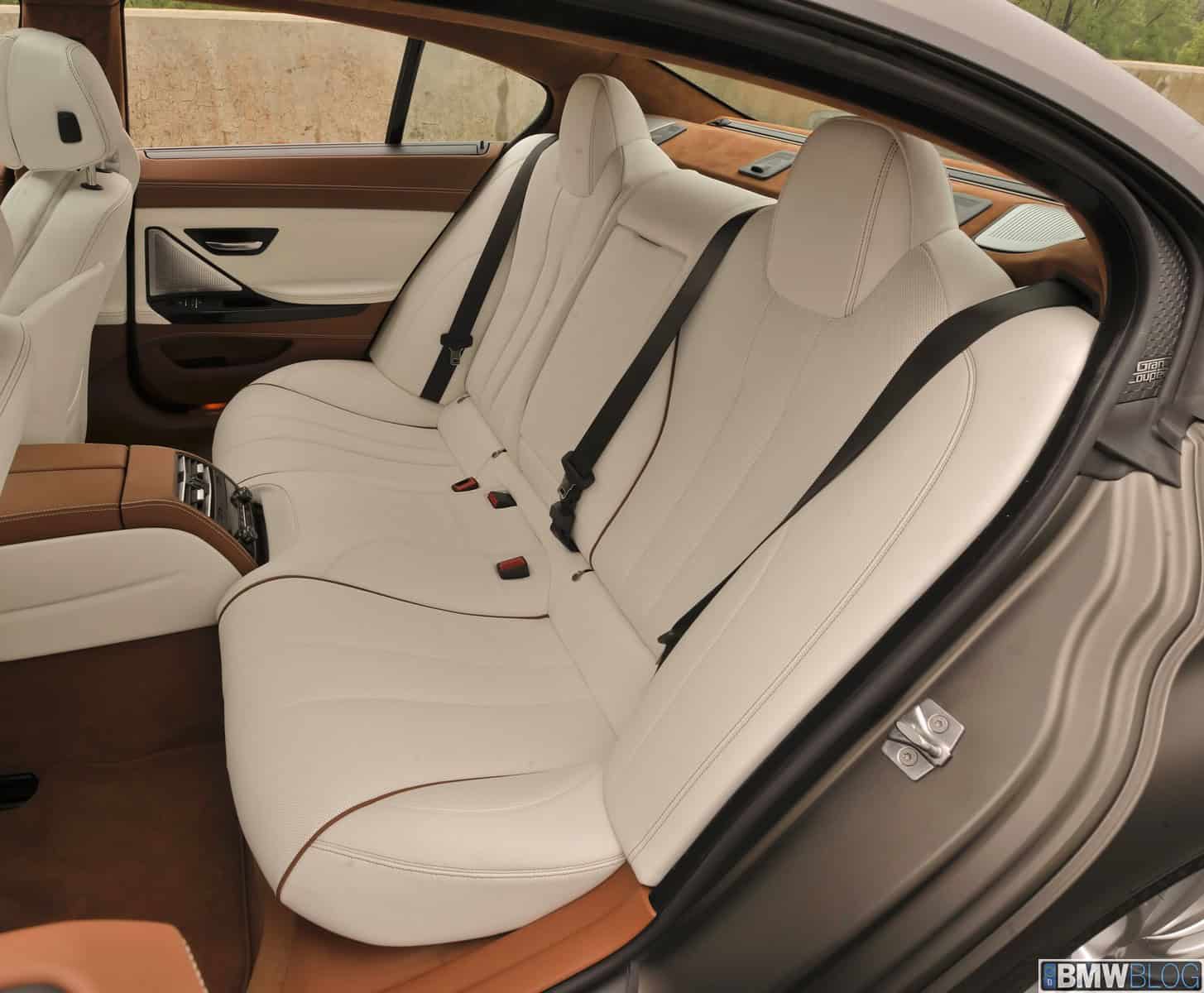 Inside, luxury at its best. The sweeping dashboard from the 6 Series models wraps around the driver, providing the connection between the car and the driver as mentioned many times by the design gurus in Munich. The quality of materials is higher than ever, from the fine leather and wood to the premium plastic found on buttons and other accessories. Alcantara headliner and laser-straight double-stitching show the premium value of the Gran Coupe. Add to this the Bang & Olufsen system and gadgetry like surround-view front cameras and Head-Up display, and the package becomes even more compelling.