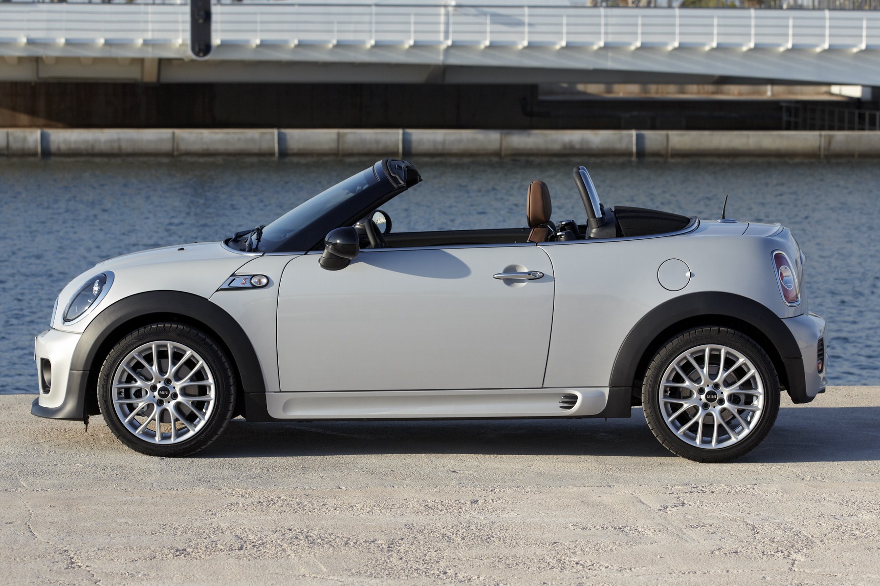 The MINI Roadster is an elegant and sporty small car for discerning drivers who value high-quality design, powerful engines and precision-tuned suspension. The typical MINI interpretation of a compact roadster unites purist sportiness with spontaneous enjoyment of driving around town with the top down. Padded stainless steel roll-over bars and the windscreen frame round off its elegant design while at the same time ensuring optimal safety for driver and passenger.