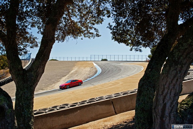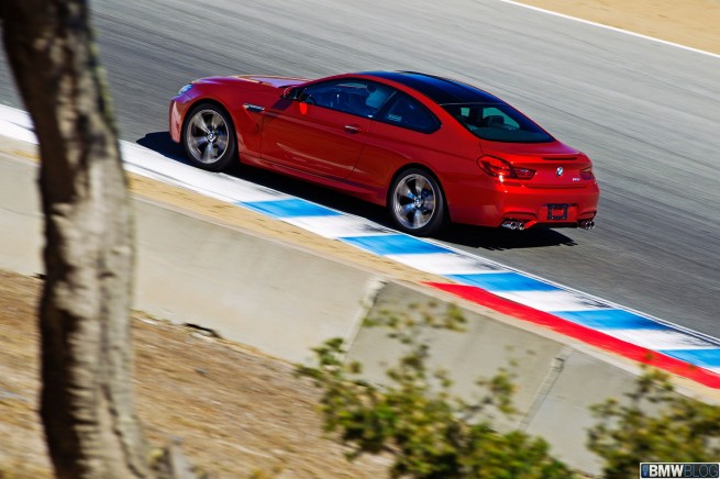 Let’s run through a few corners of Laguna Seca to paint a picture of the M6’s handling qualities. Early-apexing and getting a good run off of the last corner before the back straight, the M6 powers uphill with unrelenting acceleration. Halfway up the back-straight, the track drops back downhill, unsettling the chassis. The car’s 4,078 lbs are felt here, as the chassis is slow to settle back into the asphalt.
