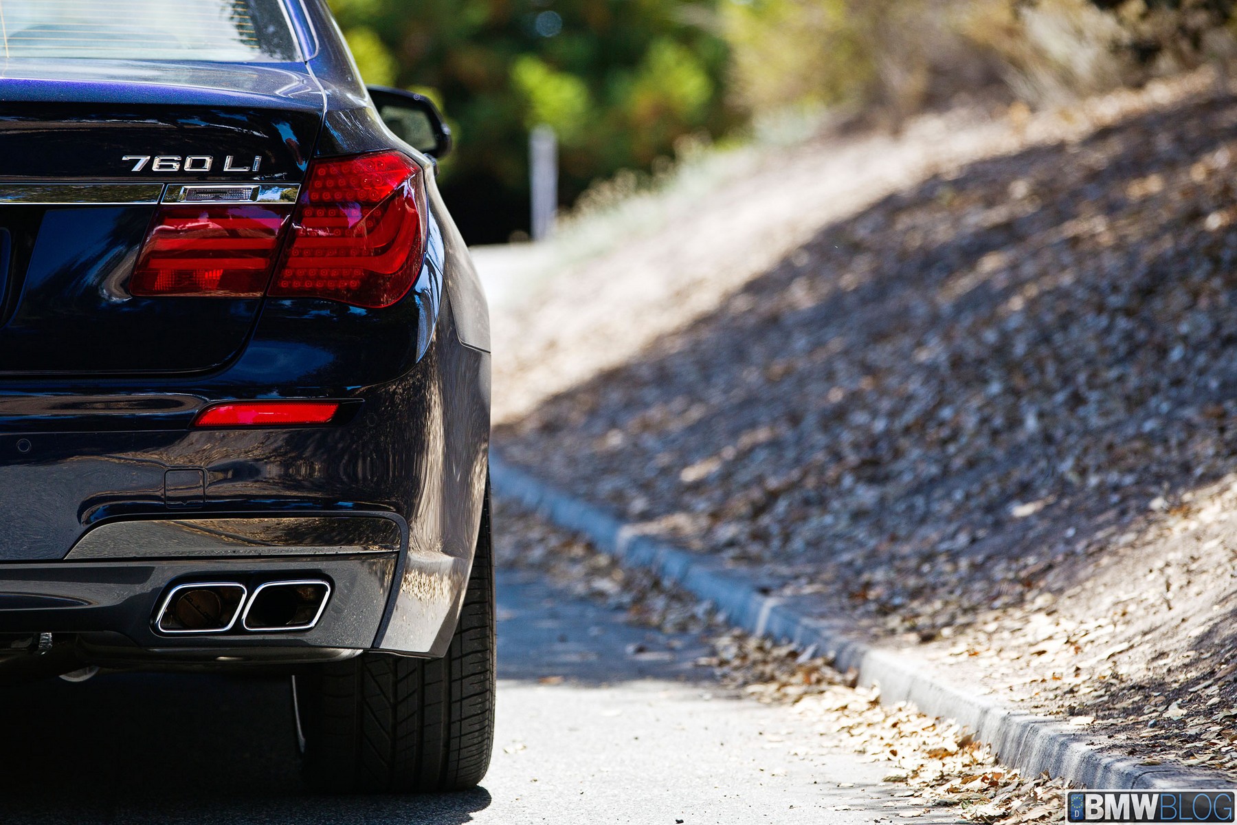 To emphasize that this is the highest-end 7er, the 760Li sports a slim chrome bar between the four chromed tailpipe tips in the rear apron.
