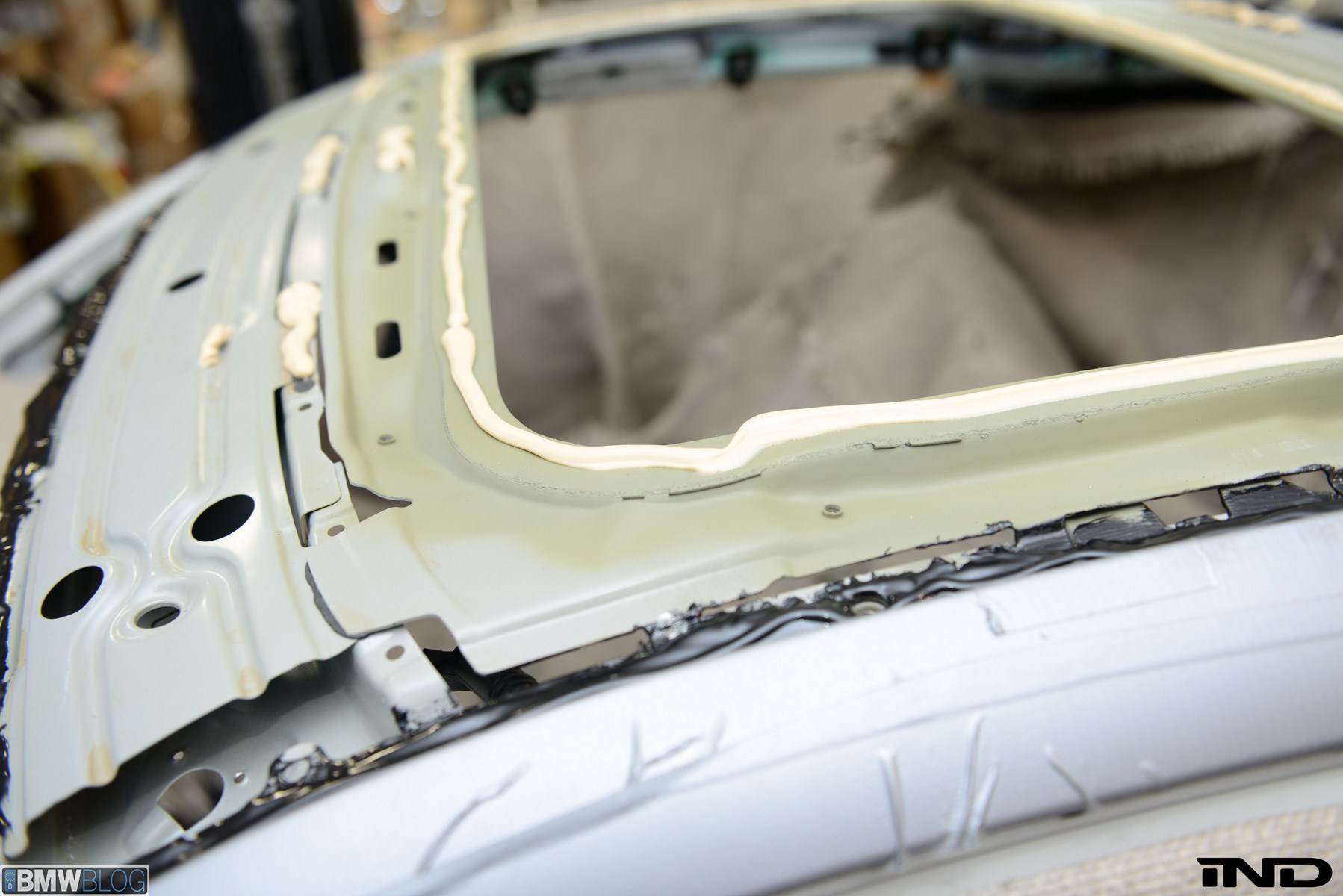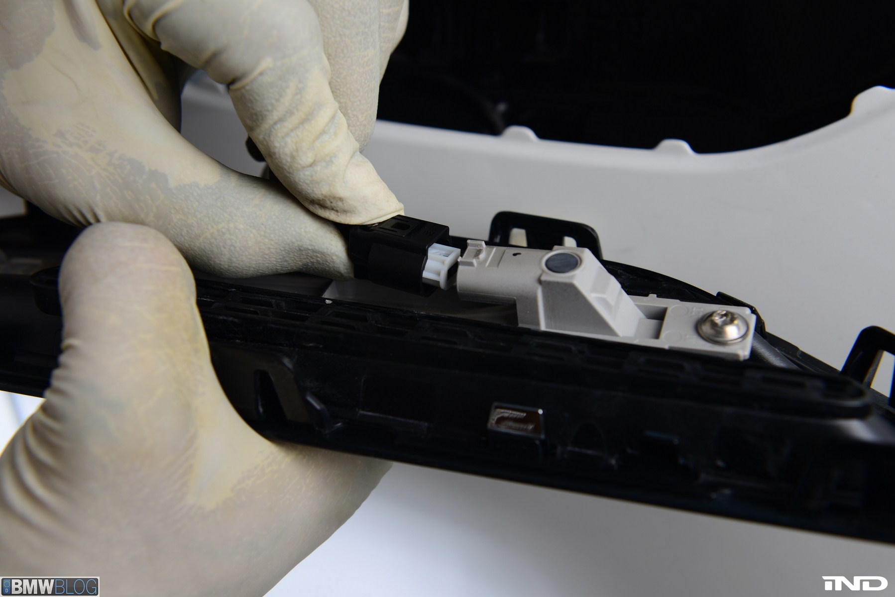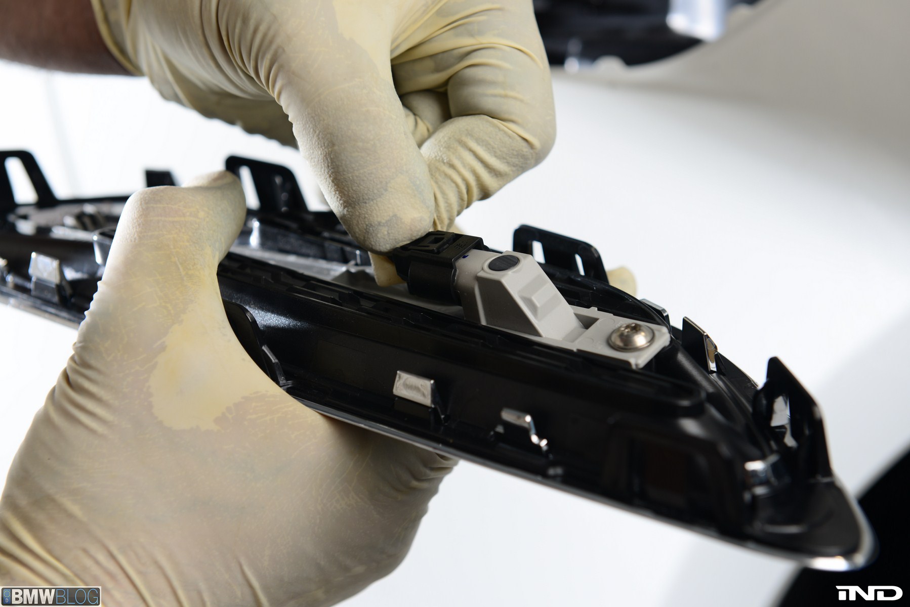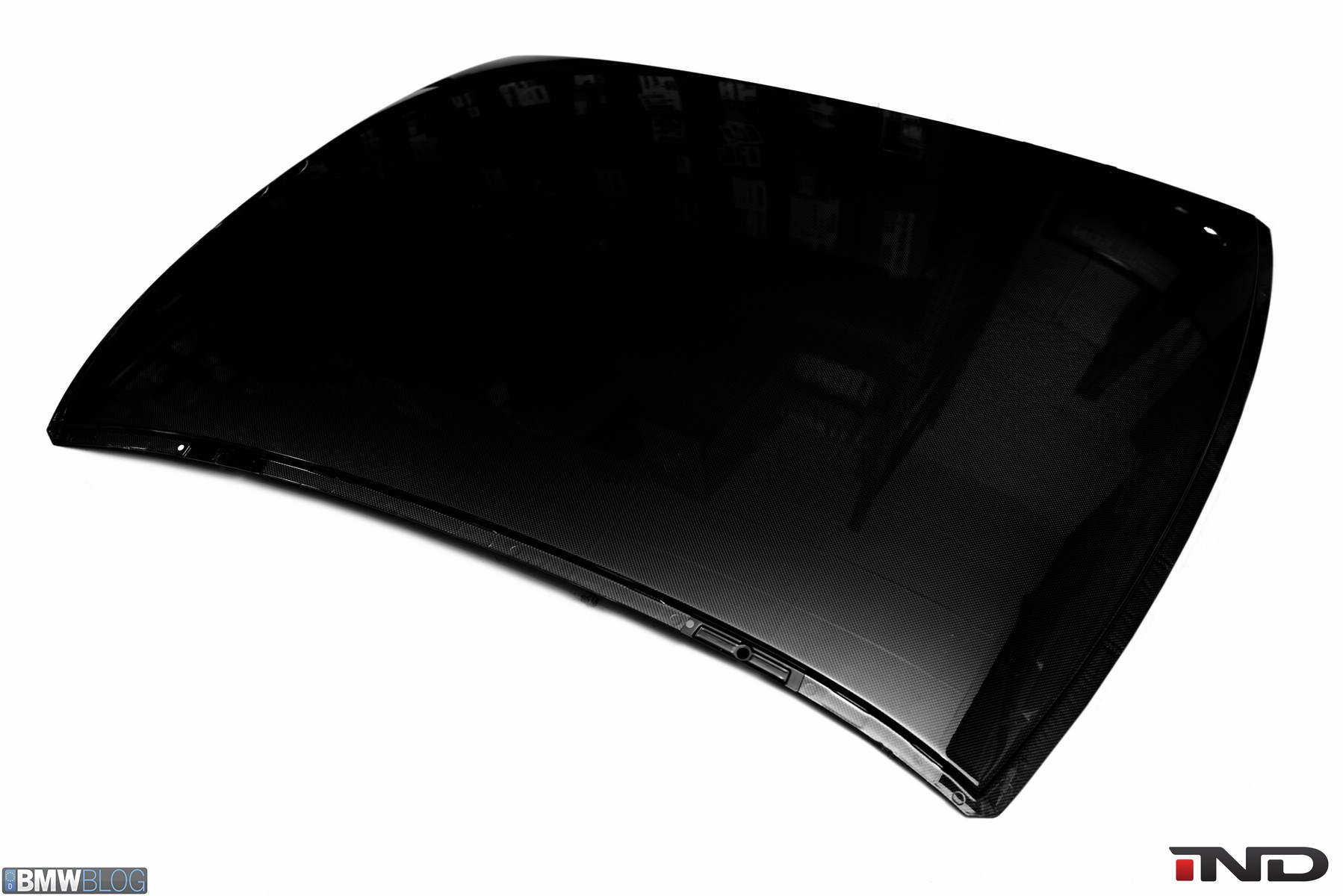 Matching the rear diffuser is a gloss black Revinora front lip, which fills in the lower end of the bumper for an OEM Plus look. We added IND’s Cosmetic Package, including custom painted gloss black front grilles and side grilles in Alpine White with light LED tint. Our rear spoilers with CRT theme have gained popularity quite rapidly, and we installed a lightweight one from BMW Performance with an Alpine White stripe setting off the carbon fiber perfectly. Rather than leave the existing rear M5 trunk badge chrome, gloss black paint was applied to again bring relief against the light-colored body.