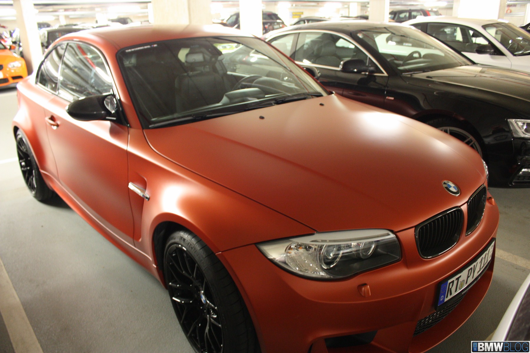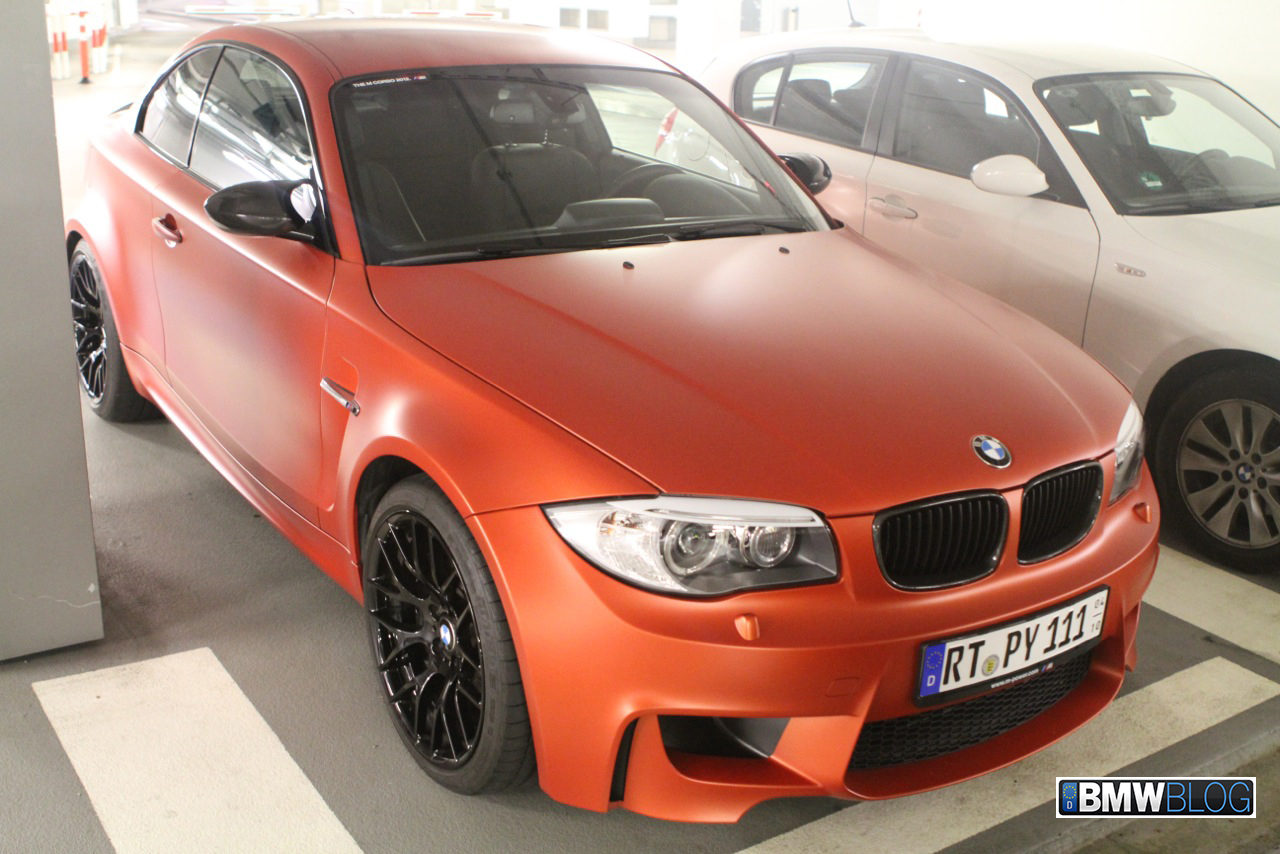 Here are the first photos of a BMW 1M painted in Frozen Valencia Orange. The matte orange 1M was spotted earlier this year at the M Festival at Nurburgring, as well as the BMW Welt in Munich. When it launched in 2011, the limited edition 1M was offered in three colors from the M factory: Alpine White, Sapphire Black and the temporarily exclusive Valencia Orange.