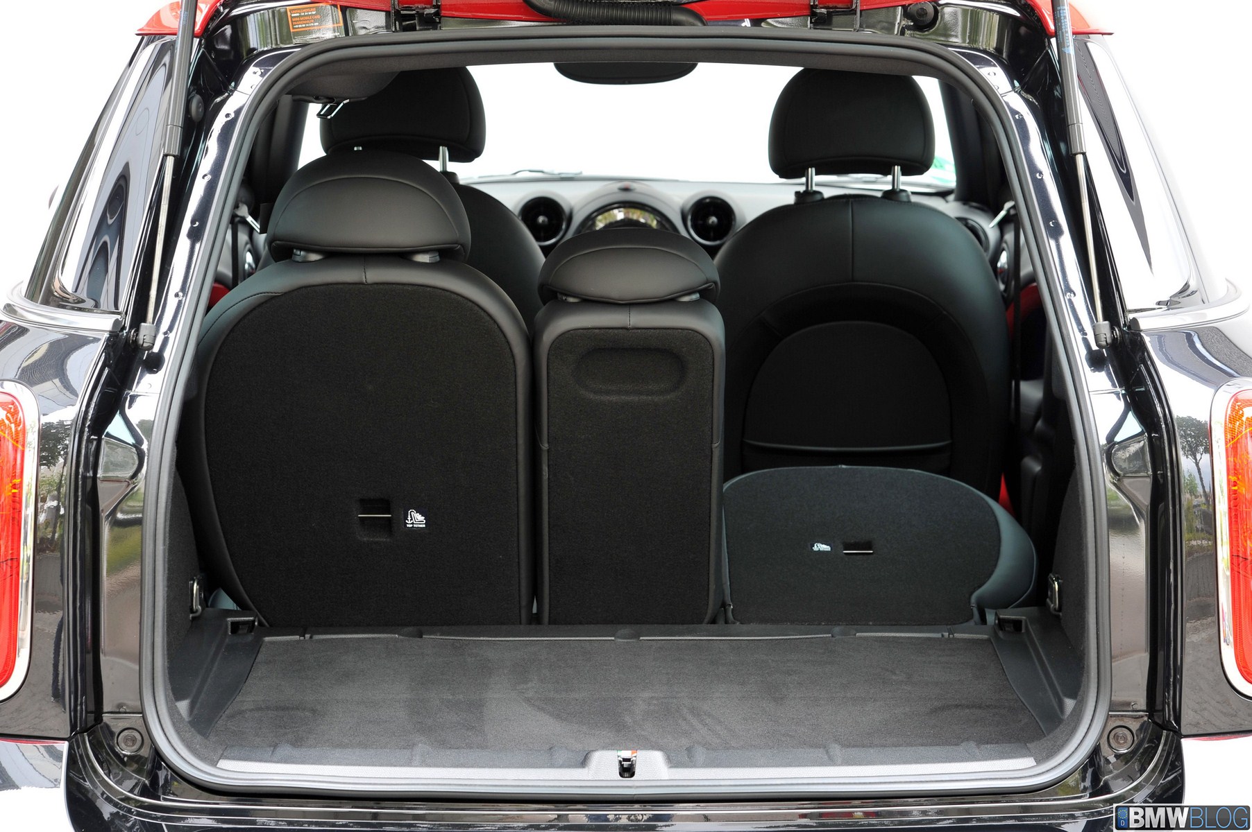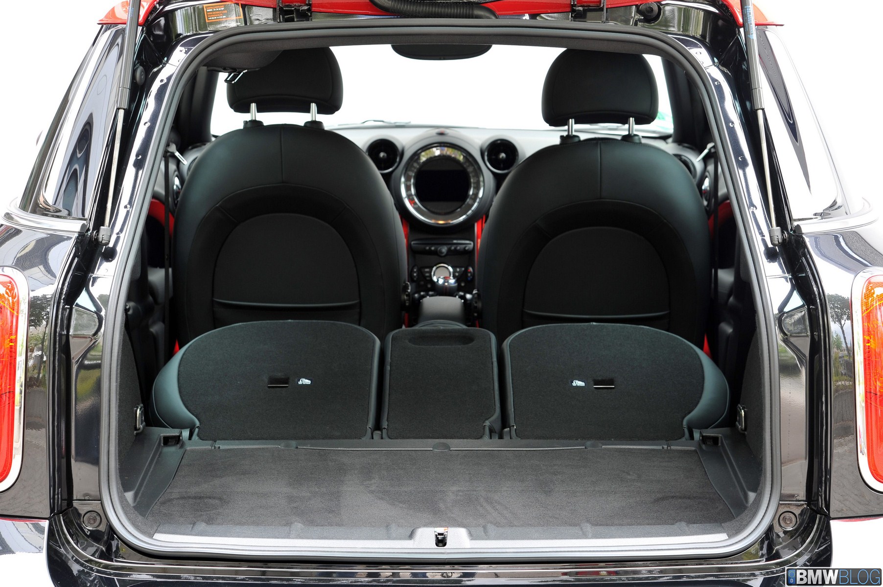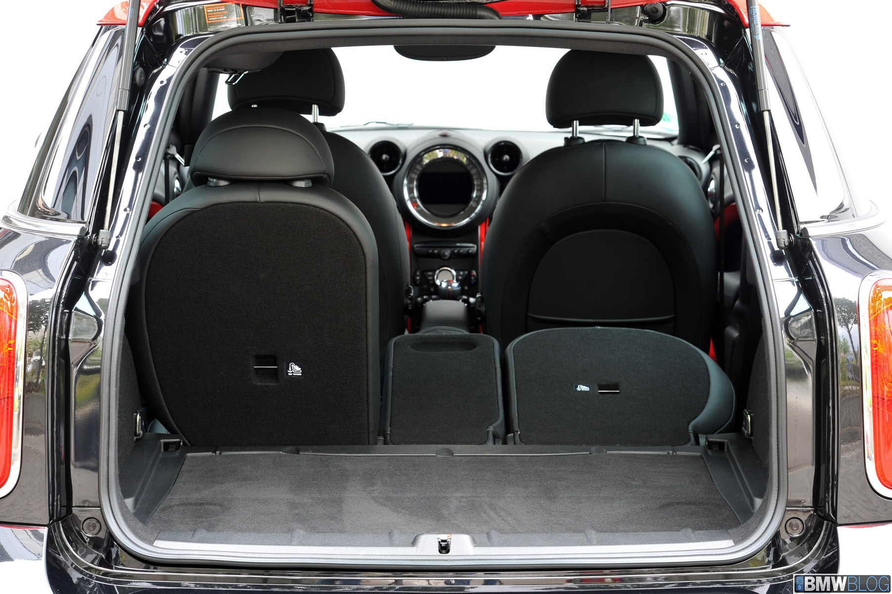 The rear of the MINI John Cooper Works Countryman can be specified with either a seat bench for three passengers or – as a no-cost option – two individual seats. The rear seats can slide fore and aft in a 60 : 40 split (if the three-seat bench is specified) or individually, and their backrests can be adjusted for tilt and folded down individually or in a 40 : 20 : 40 split (three-seat bench) to increase boot capacity from 350 to as much as 1,170 litres. The Centre Rail storage and attachment system is also part of standard specification.