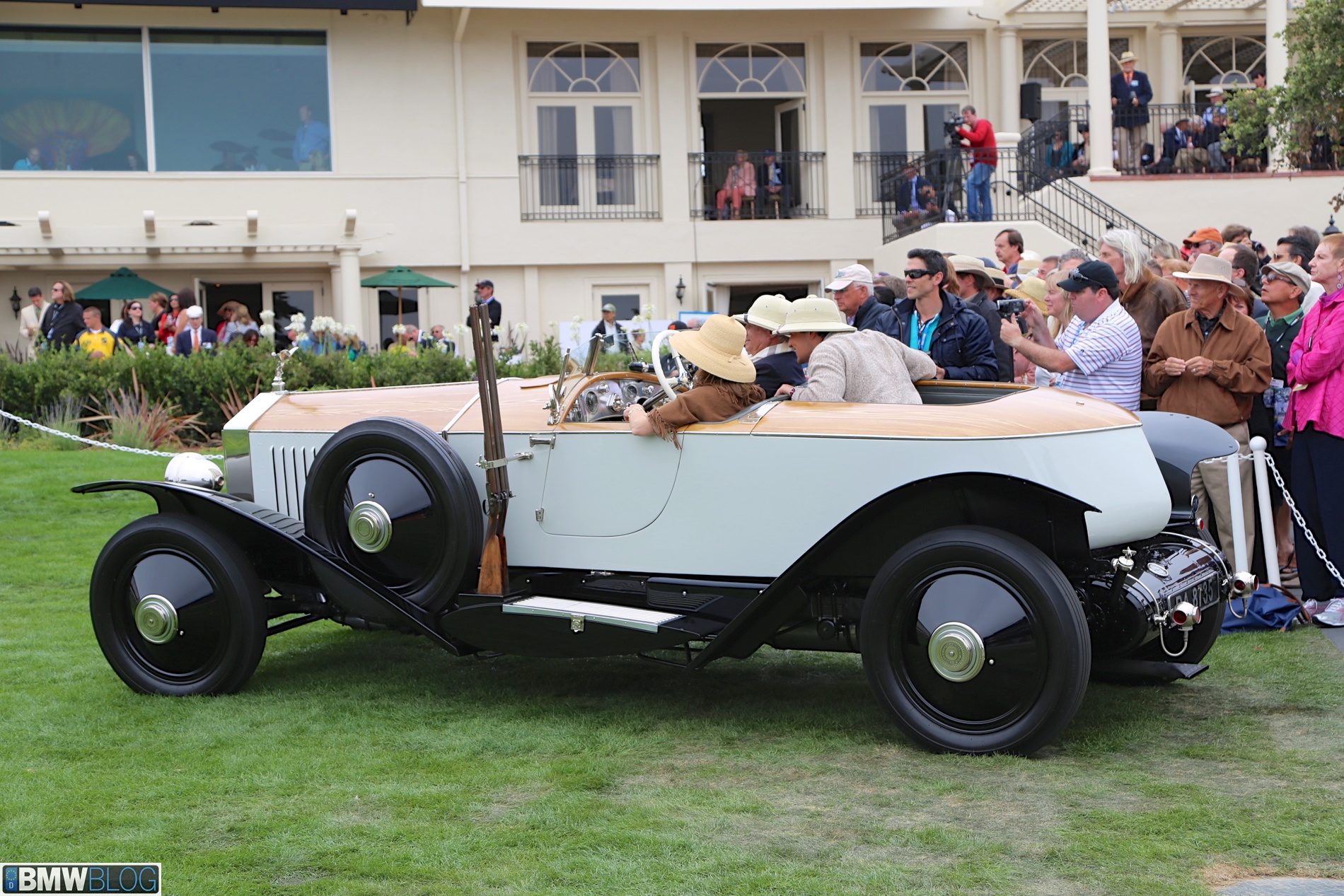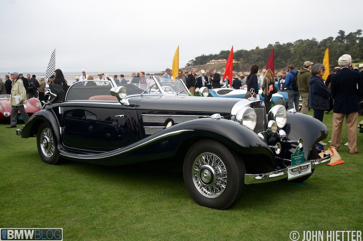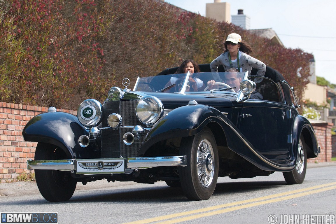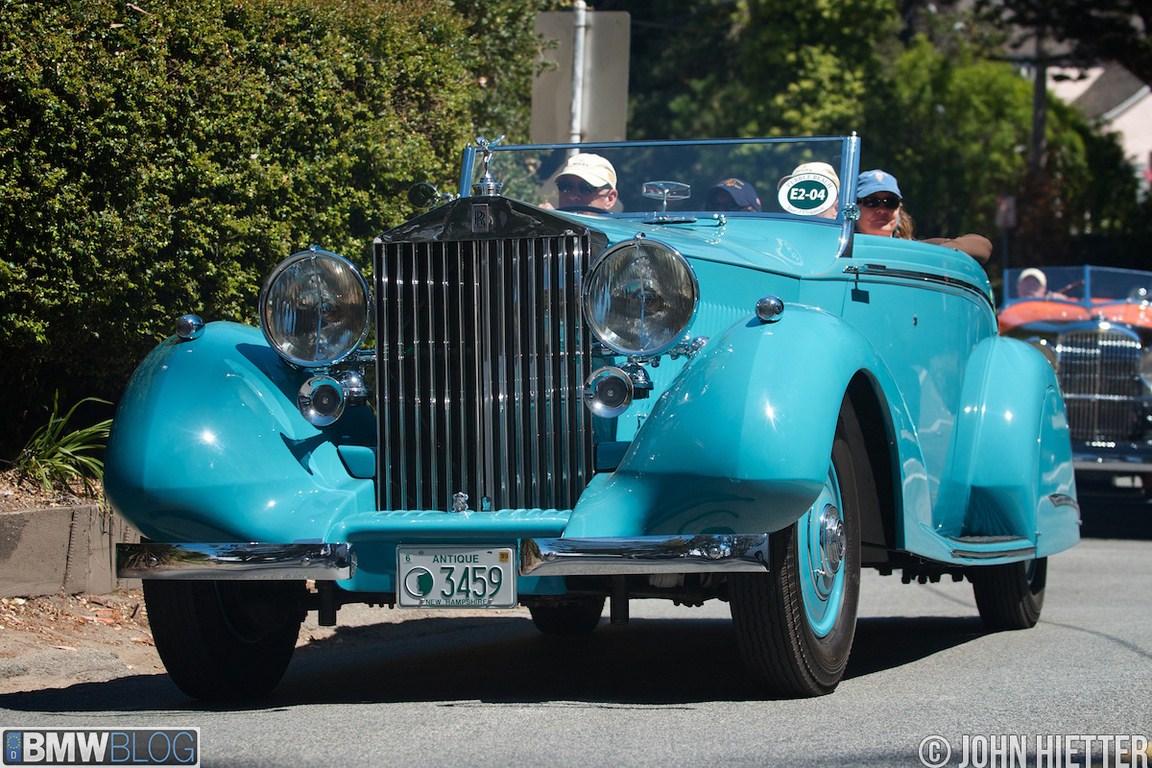 Finally, you make your way down the path, through a sea of ticket checkers, between two buildings, and out onto the main show lawn of Pebble Beach. This year I didn’t really know what to expect but still found some gems. First, the 50s and 60s european sports and race cars on display were probably my favorites. The Ferrari 250 GT Tour De France, the Ferrari 500 TRC, the Aston Martin DB5, and others are filled to the brim with beauty and emotion. Their exquisite curves just melt onlookers and their candy-like paint colors shout for attention. Next,there were many great pre-war cars on display, my favorites being a Rolls Royce with a gun rack and seriously German, all black Mercedes-Benz 540k. One could come over the car for hours and still not see or fully take in every exacting detail. It took me a while to appreciate these cars but now I can see them for the rolling works of art that they are.