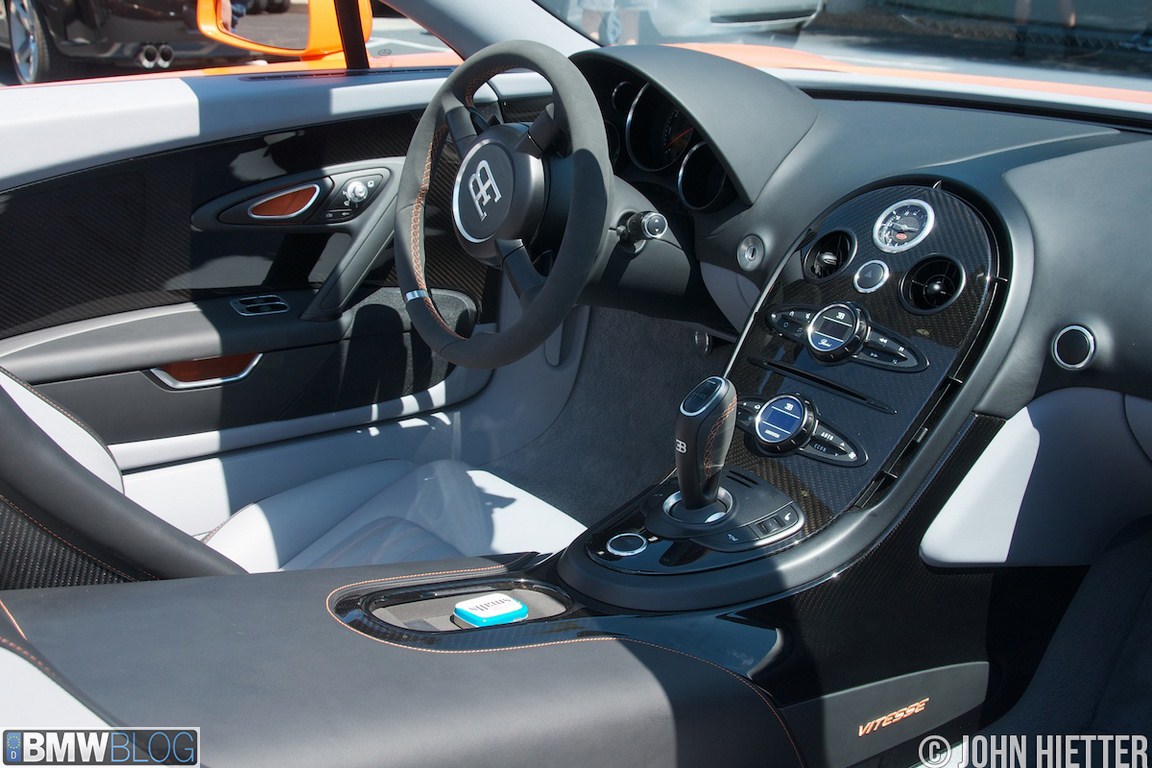 While there are many more cool cars to check out in the gallery, the last model I will cover is the Bugatti Veyron Grand Sport Vitesse. In pictures, the Bugatti Veyron (in all forms) is easy to get used to and eventually shrug off as big, heavy, and uninteresting. However, in person, the car is incredible. The Bugatti Veyron is not merely another people mover rolling down the road, it is a masterful blend of art and engineering that carries an aura of history and grandeur. Other cars can grab my attention but this automobile transfixes me from the moment it enters my sight to the moment it leaves. These 2 uniquely colored 1200hp convertibles do a great job of continuing this company’s legacy. Instead of boring off-the-shelf color combos, these Bugattis have special configurations that push the boundaries of materials and colors used on automobiles. The first car is metallic orange and Carbon fiber. The boldness of metallic orange fits the outrageous performance of this car that has 1200hp and can hit 60 mph in 2.5 seconds. Additionally, carbon fiber body panels represent the car’s technological innovation and give it a modern, cutting-edge image.The second car is neon yellow and olive green. This color combo represents pushing the style and design boundaries. Bugattis are the epitome of style and elegance so dressing the car with a new and controversial color palette is fitting and makes a statement.