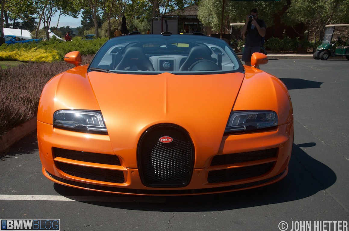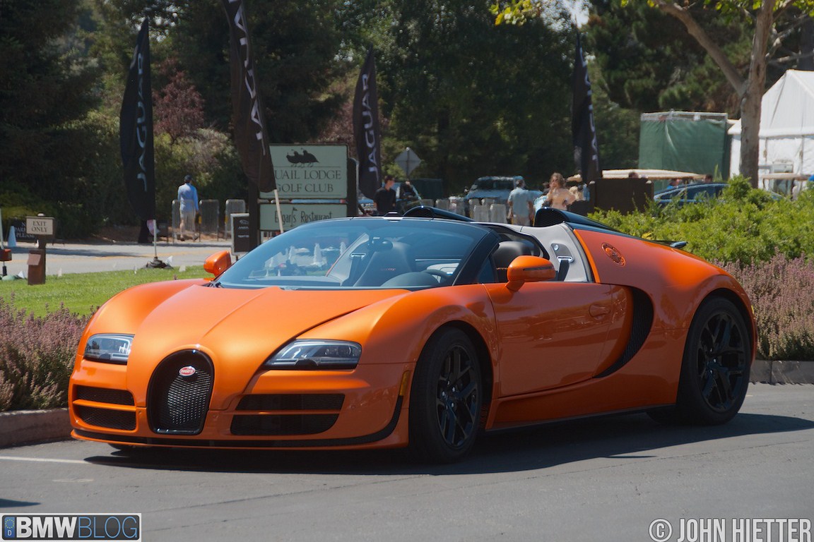 This year, after Concorso Italiano, I drove over to “The Quail” to see the yearly collection of exotic cars. On the way over the hill to Carmel Valley, where the event was hosted, I saw the metallic orange and carbon fiber Bugatti Veyron Grand Sport Vitesse!