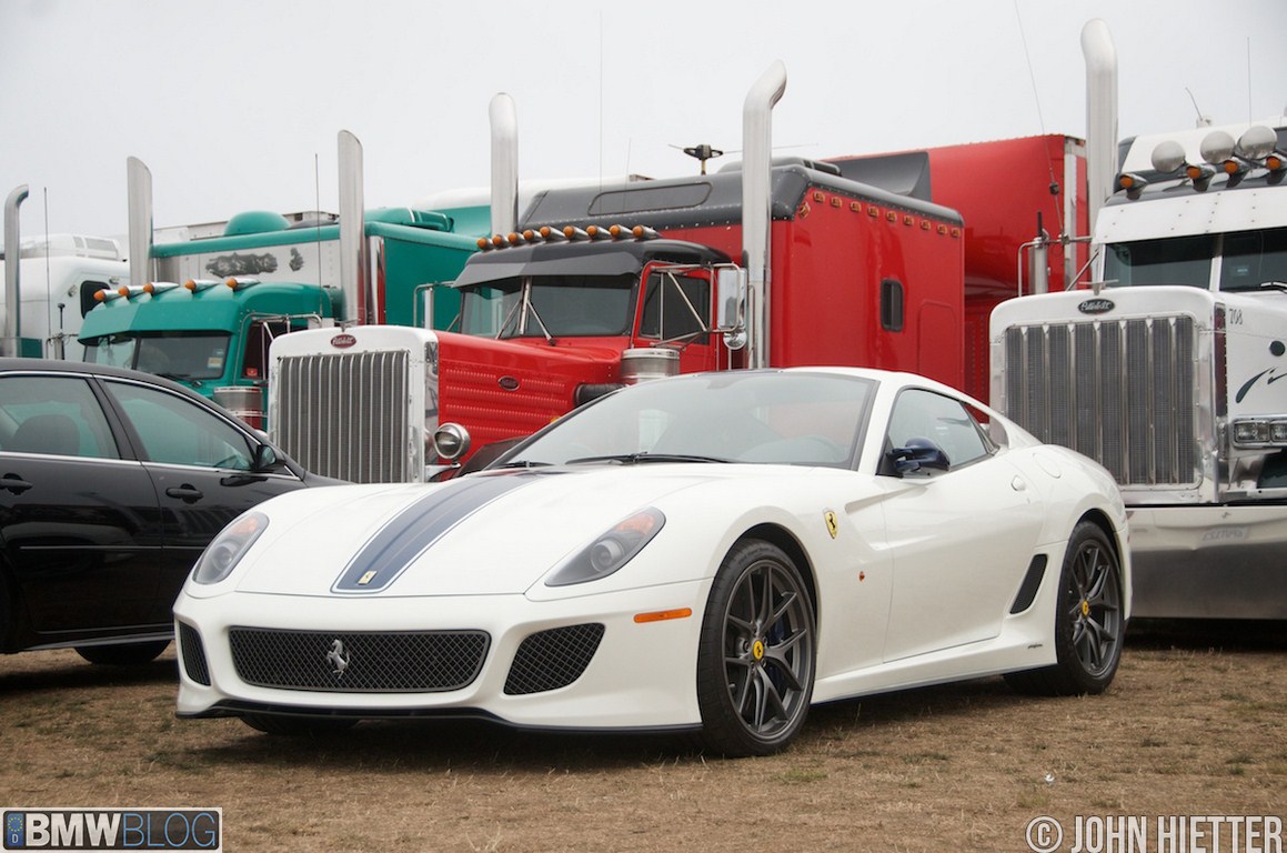 My favorite car of the parking lot was the Silver 599 GTO with black wheels, black stripe, and a red and black interior. The exterior colors are subtle and show off the car’s lines well and the interior has sporty italian flair with the bright red leather. The wolf in sheep’s clothing paint job fits the nature of the car. While the 599 GTO looks fairly similar to the 599 GTB, practically the whole entire car was reengineered using technology from the 599XX to make it a much more potent road weapon.