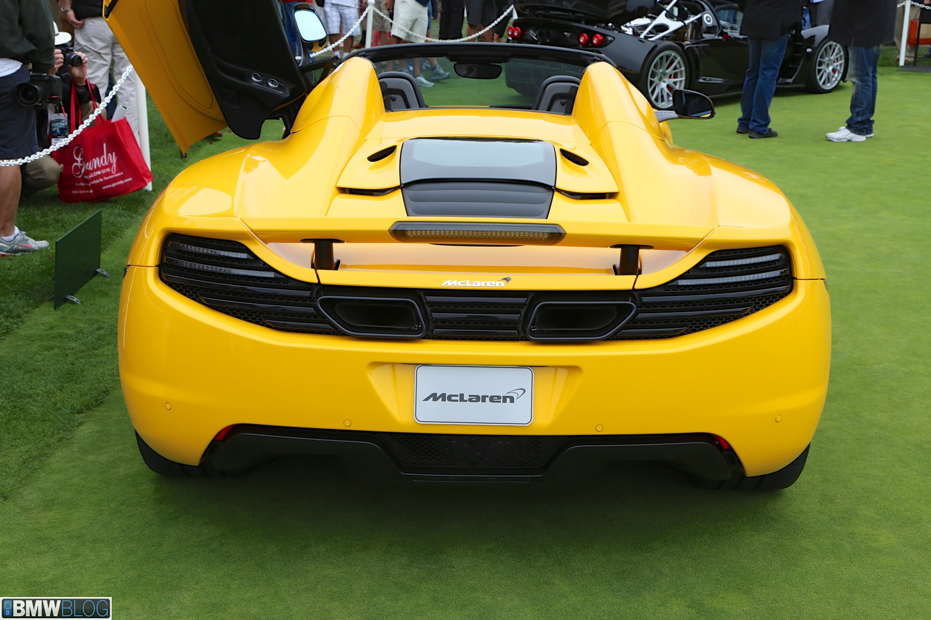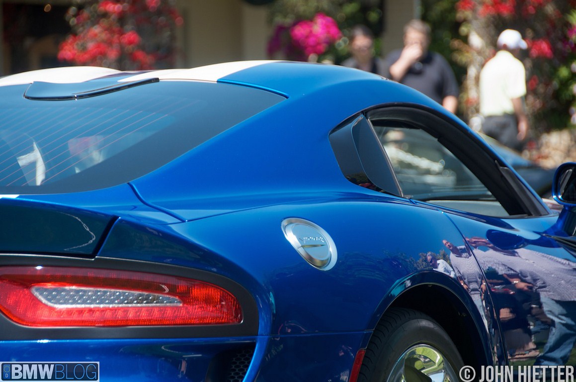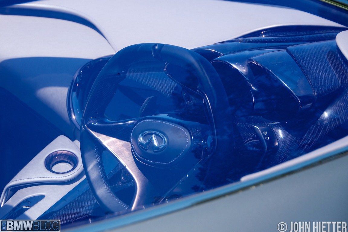 Down at the concept lawn the crews were still setting up so not all of the cars were on the lawn yet. However, of the cars there, the McLaren MP4-12s Spyder, the Infiniti Emerg-E concept, and the new Viper, the infinite was the most interesting. With its glossy metallic grey paint and its scalloped features, it looked as if the car was carved out of a block of metal. The purple window tint, the wavy grill, and the rearview cameras in place of mirrors all made this quite a unique vehicle.