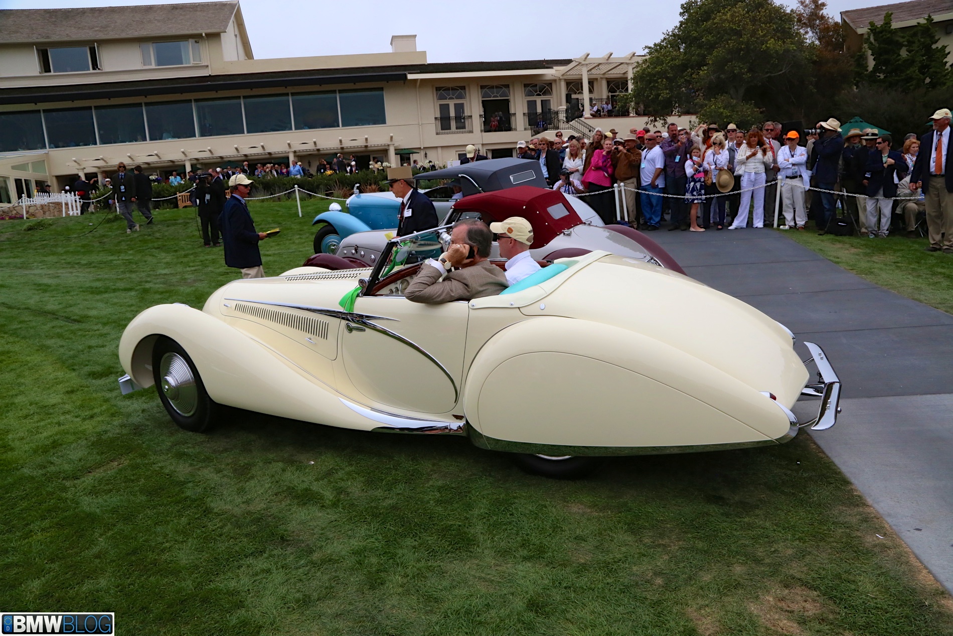 Around 1:30 P.M. the awards ceremony, a four hour procession, begins. While it is a very lengthy process, it is great fun to sit back and watch all of the selected “kings of class” roll over the stage, see them in motion, and hear their stories. I always learn something new and get exposed to cars I had never paid attention to when I watch the Pebble awards ceremony. Finally, at around 5pm, they announce the best in show winner. This year’s winner was a 1928 Mercedes-Benz 680S Saoutchik Torpedo. The car had sleek, clean surfaces, elegant trim, and masterfully sculpted fenders.