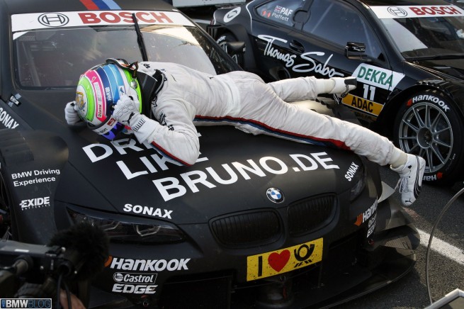 Oschersleben, 16th September 2012. The battle for the title in the DTM remains exciting: Bruno Spengler (CA), at the wheel of his BMW Bank M3 DTM, was first across the finish line at the “Motorsport Arena Oschersleben” to claim his third victory of the season in the eighth race of the year. After 51 laps of racing, the BMW Team Schnitzer driver, who started from pole, came home 0.629 seconds ahead of Mercedes driver Gary Paffett (GB).
