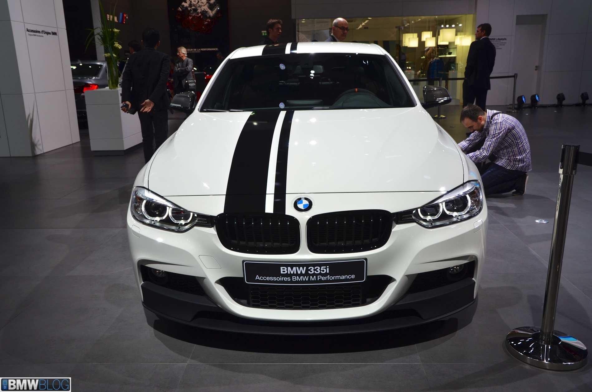 As we mentioned before, the F30 with M Performance parts comes equipped with a new 20” forged alloy wheel set (style # 405M) and high-gloss black kidney grilles that give the car a sporty look. Furthermore, the company offers the unique BMW M Performance Sport stripes. These stripes are printed on high-quality PVC film and are available in black or white.