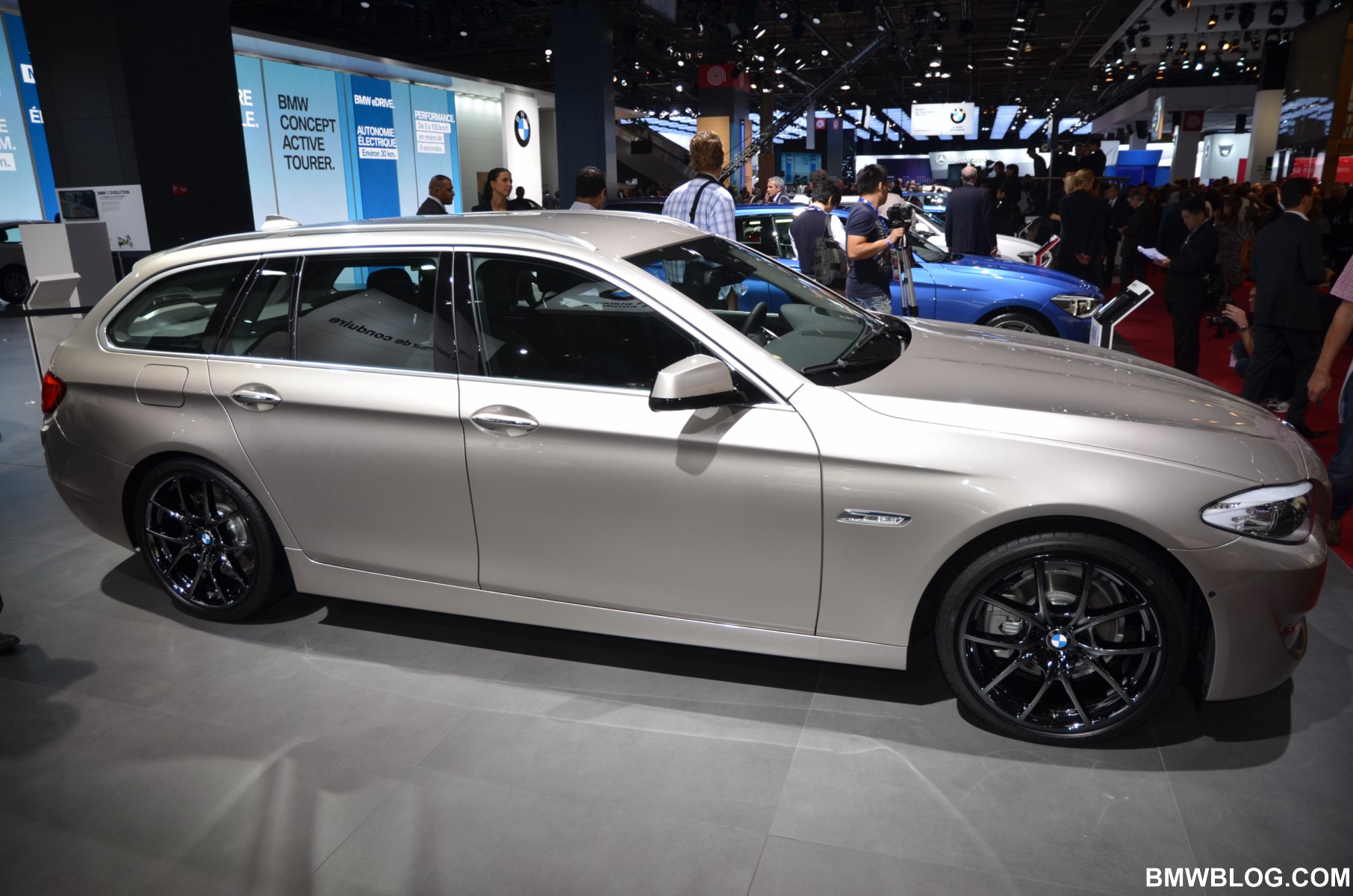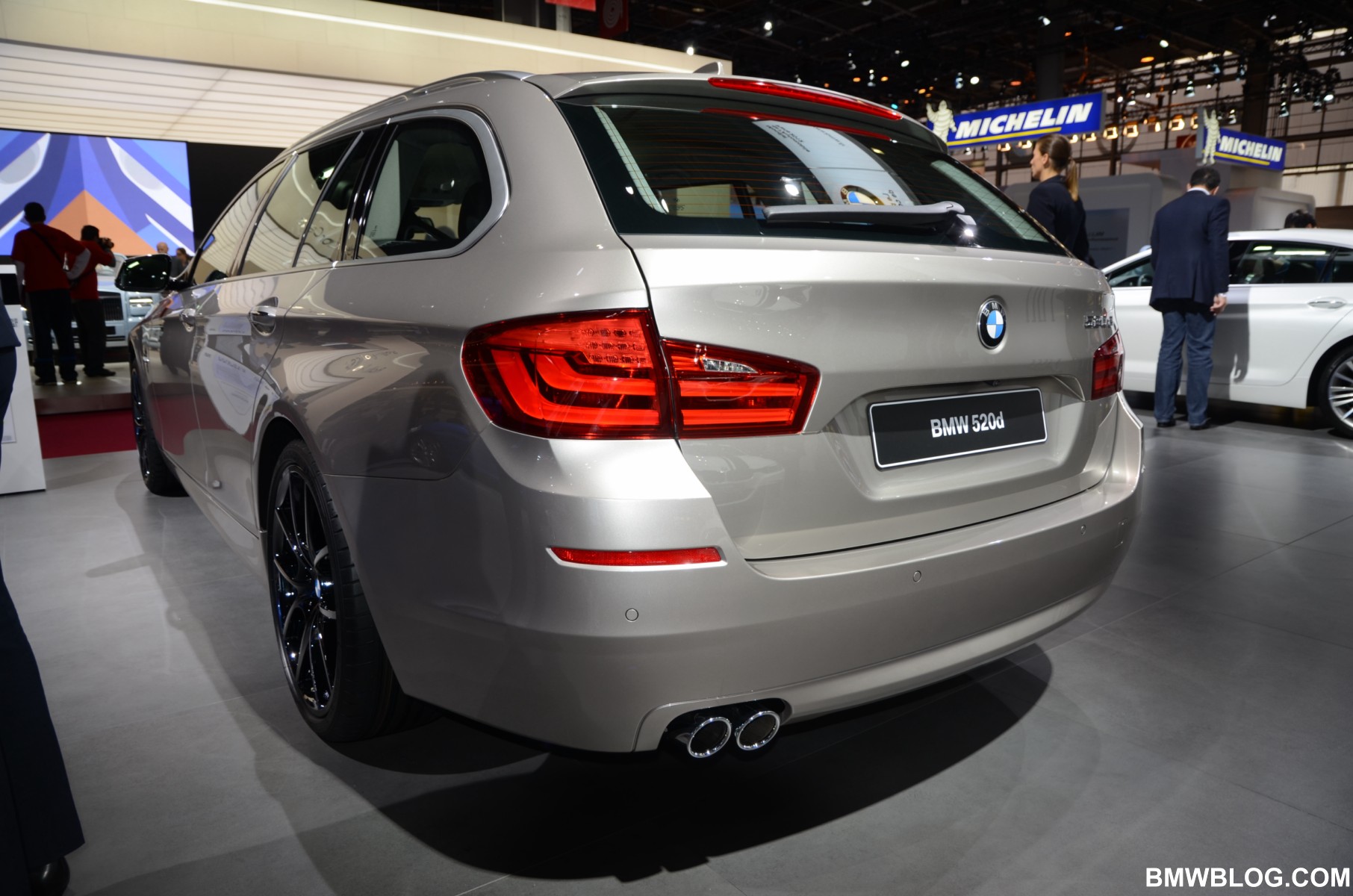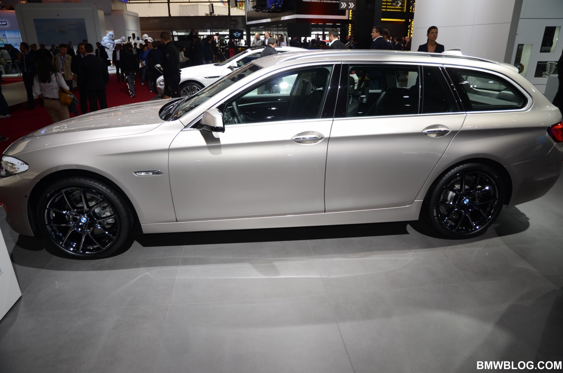 After my last drive aboard the M550d Touring, I fell in love for the first time with a BMW sports wagon. But before my review goes live next week, another Touring came before my eyes at the 2012 Paris Auto Show. The BMW 520d, displayed in the Cashmere Silver color, was featuring some of the best looking wheels we have seen on a BMW recently. Dubbed Liquid Black, the lightweight alloy wheels carry the catalog style 356 and are available in 20s.