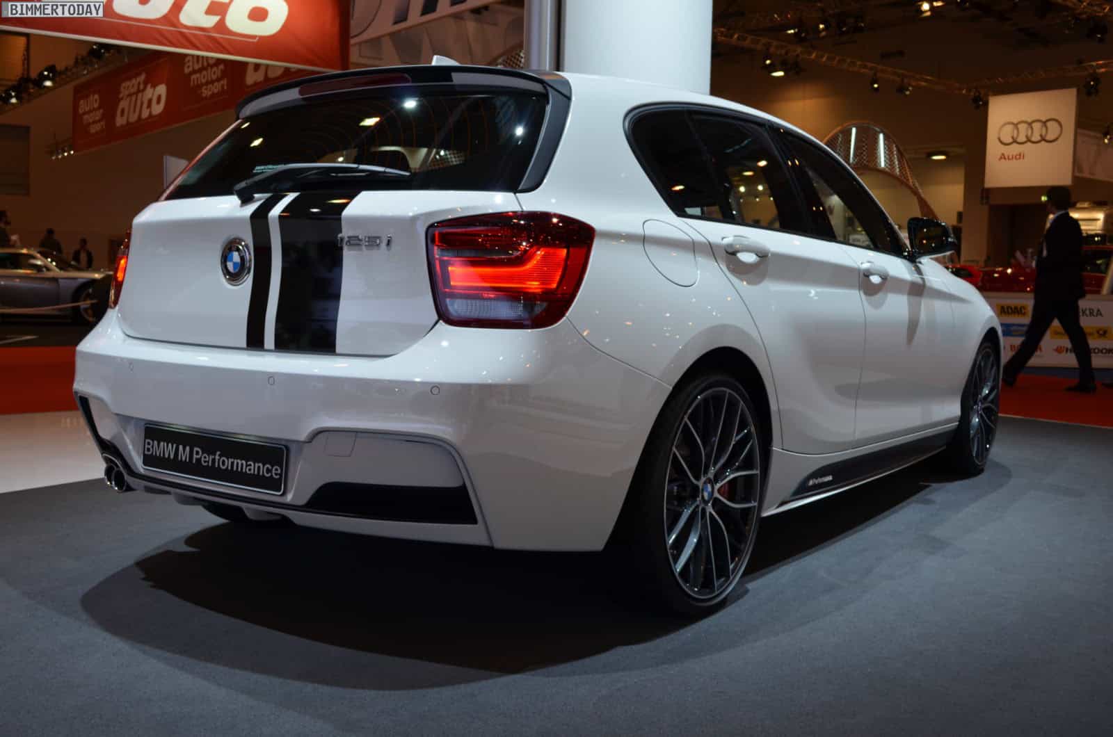 The F20 BMW 125i is powered by a 218-hp four-cylinder engine along with turbocharging. In the package, BMW included front and rear aprons and side skirts, roof spoiler, M wheels, carbon fiber mirrors, and blacked out kidneys, all coming from the accessories range of BMW M Performance. The car also includes a sport suspension and a more powerful braking system. The interior stands out with its M Performance steering wheel with Alcantara rim and carbon-fiber trim elements.