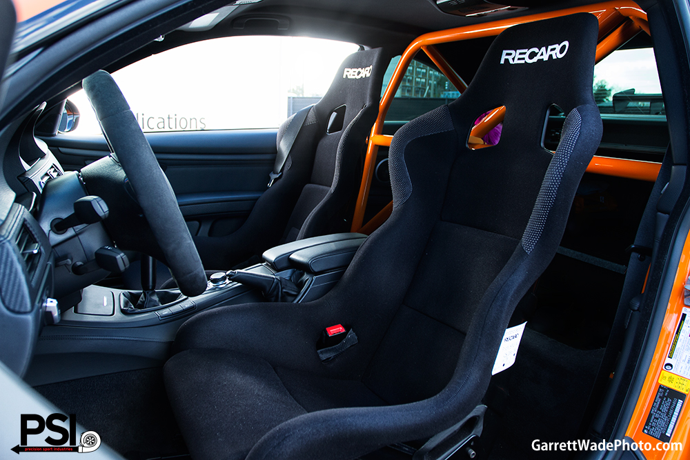 Once they acquired the OEM M3 GTS wing, the direction of the project’s new version became clear. The AE Performance Bar in Fire Orange and RECARO SPG XLs were next, mounted using the OEM sliders and mounting positions. The shift knob was exchanged for the Macht Schnell Nylon edition with an Active Autowerke SSK as well.