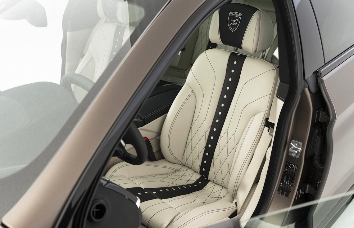 The Hamann aerodynamic components are adapted to the original M Sport parts and include a redesigned front spoiler with LED lights above inside the air intakes, along with a carbon fiber lip that will increase downforce. Other upgrades include new side skirts with air vents and a new rear diffuser.