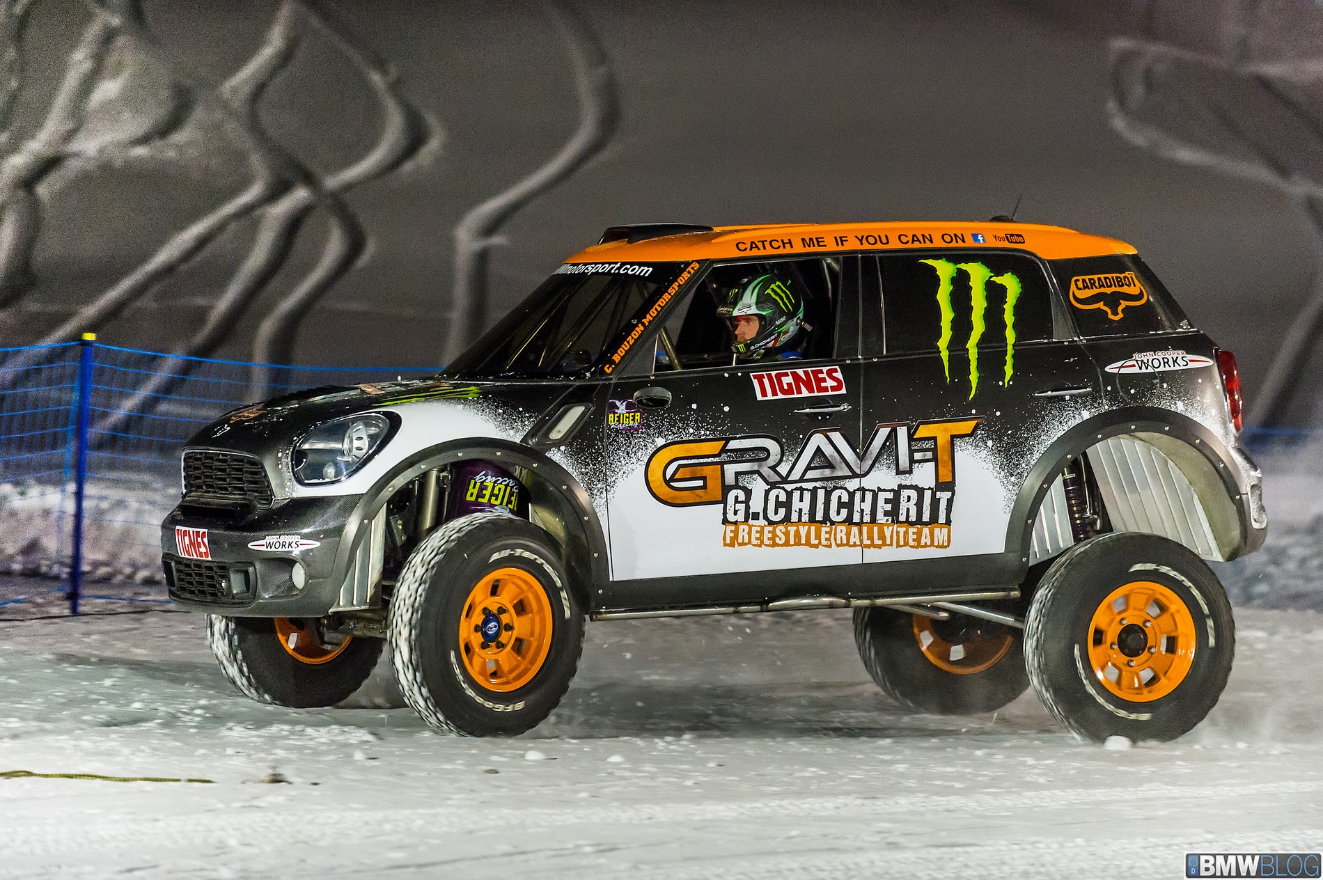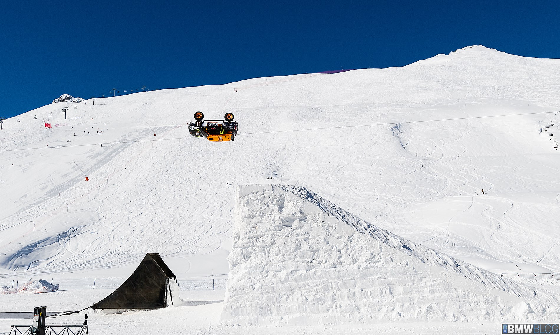 The backflip had previously been attempted by other drivers. But Chicherit has now become not only the first automotively-propelled artist to execute a perfect landing, he also did it “unassisted” – in other words, without the aid of a special ramp with moving elements to boost the car’s rotational movement. For his take-off, Chicherit used a static ramp that fits the same template as a quarterpipe on a freestyle course. With the ideal ramp breakover angle in place, Chicherit needed only two other things to record a successful attempt: an extremely light touch with the accelerator and a MINI with a suitably buoyant spring in its step.