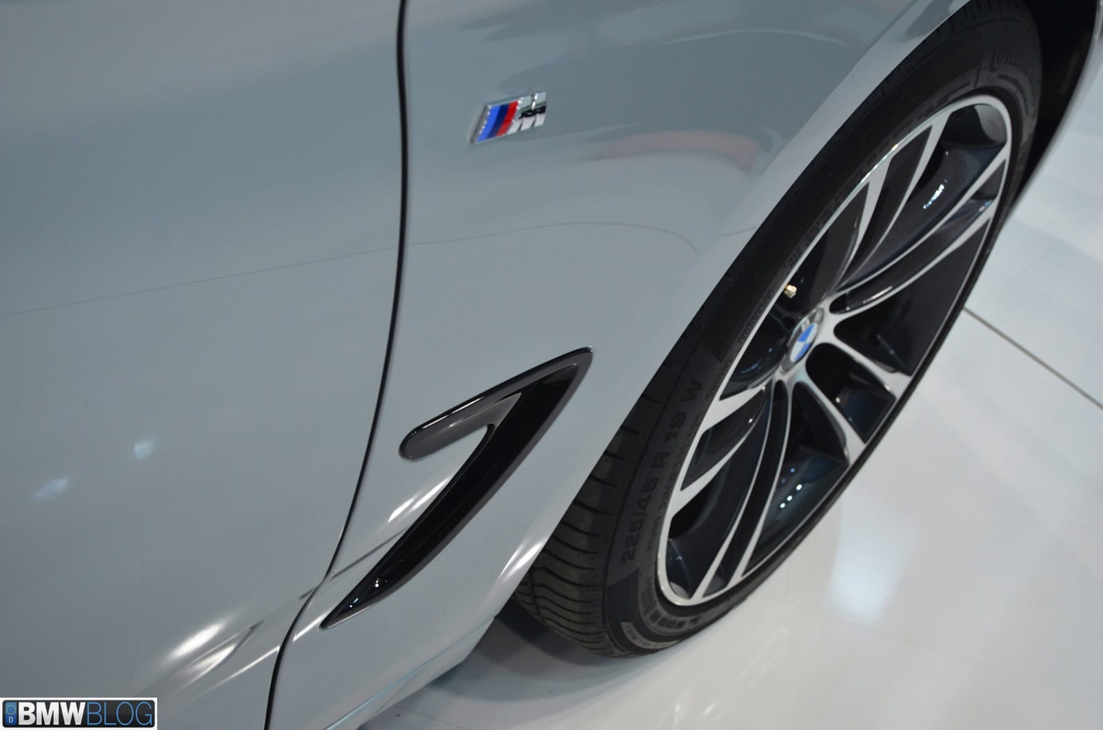 BMW displayed two models here in Geneva, the high-end 335i GT with a newly designed M Sport Package – which adds, beside the usual M design cues and aggressive front end, a new ///M logo on the front side skirt. The unique M badge depicts an M Sport model and not a fully developed M vehicle. The M Performance brakes with blue calipers were included in this show package, along with the Active Rear Spoiler which helps with downforce and aerodynamics.