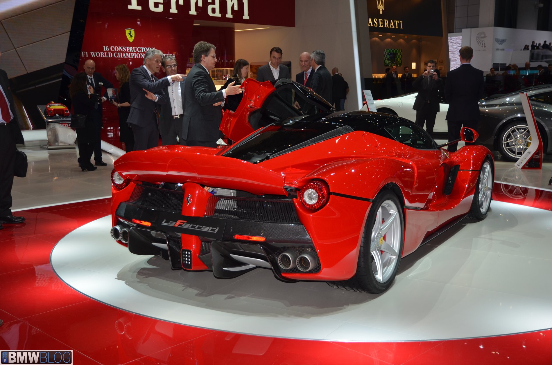 At the 2013 Geneva Auto Show, Ferarri unveiled their first hybrid model. Simply dubbed LaFerarri, the successor of Enzo outputs 949 horsepower and 664 pound-feet of torque, with 789 horsepower and 516 pound-feet of torque coming from a 6.3-liter V-12 engine with a righteous 9,250 RPM redline and a 13.5:1 compression ratio.