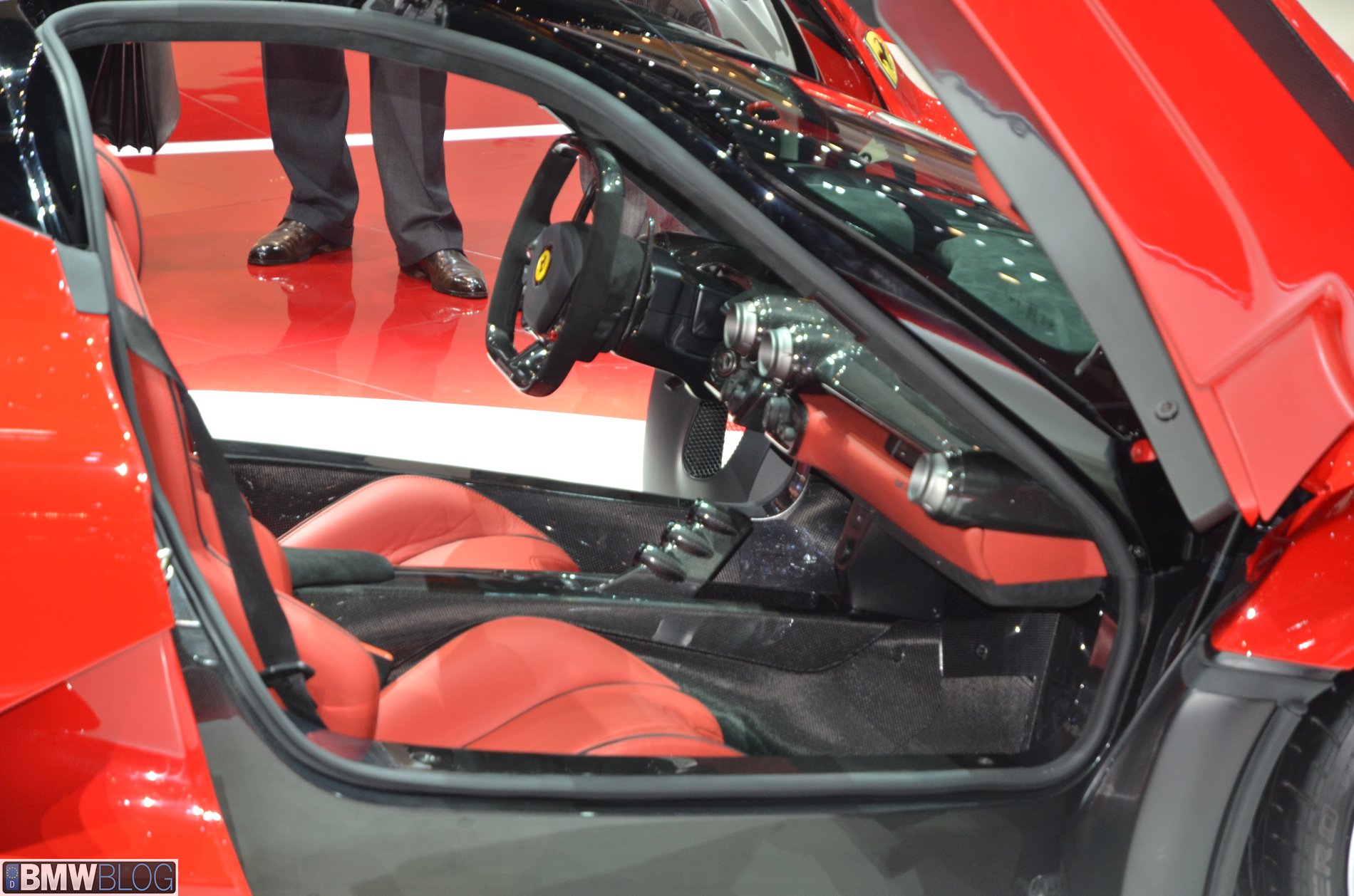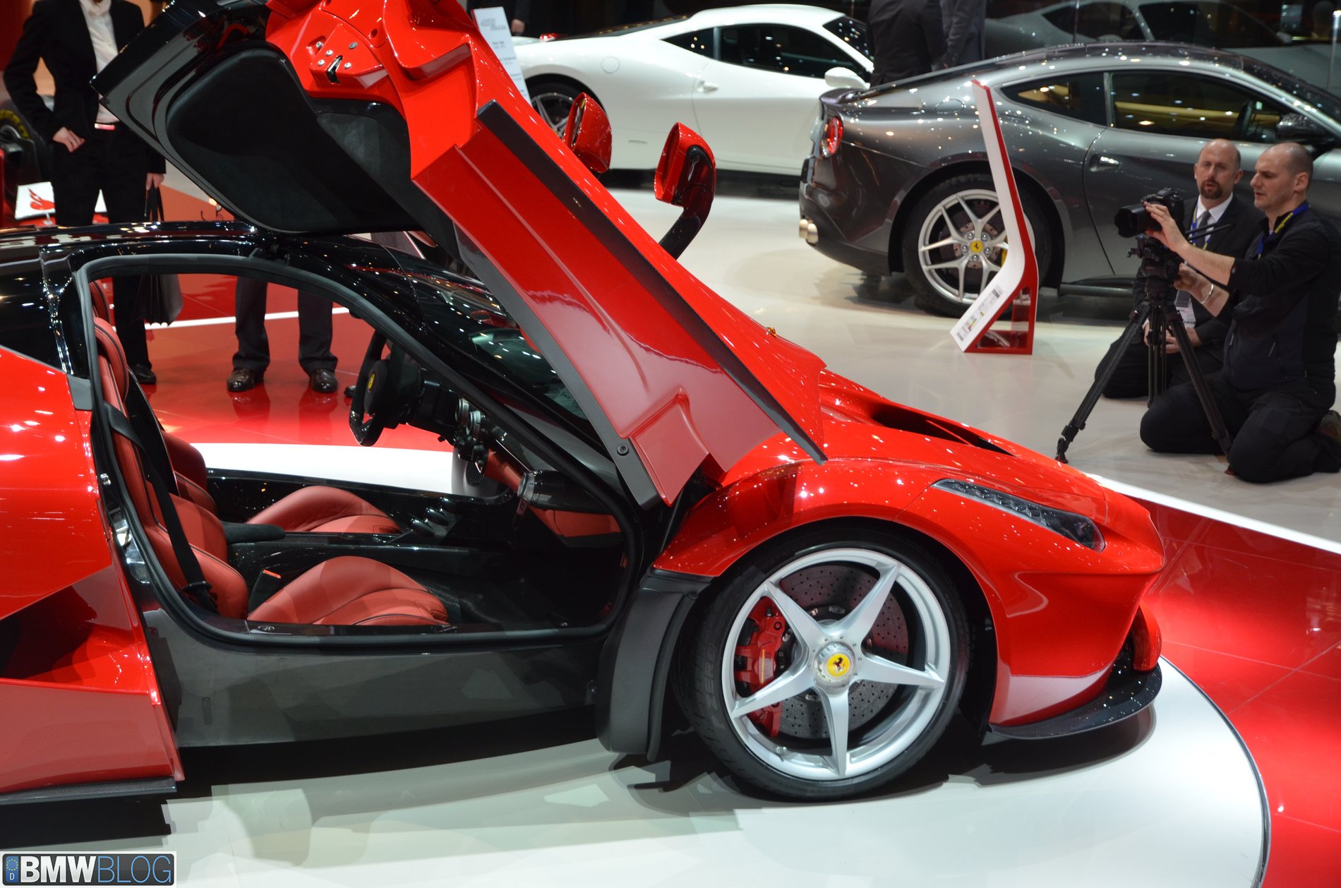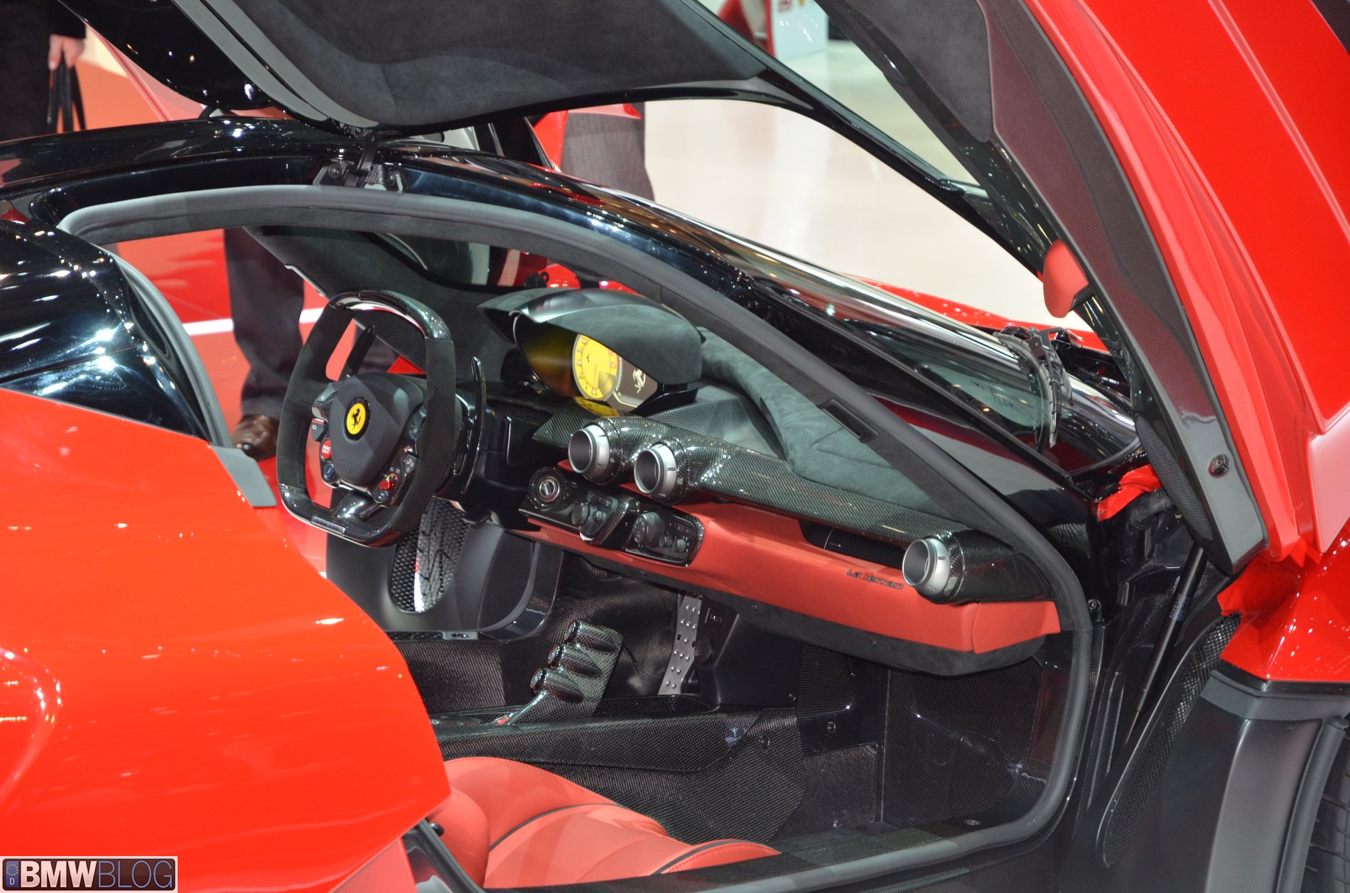 To keep the weight down, the chassis is made from several composite materials including carbon fiber and Kevlar. Ferrari didn’t reveal the curb weight of the car, but it’s expected to be around 2,800 pounds.