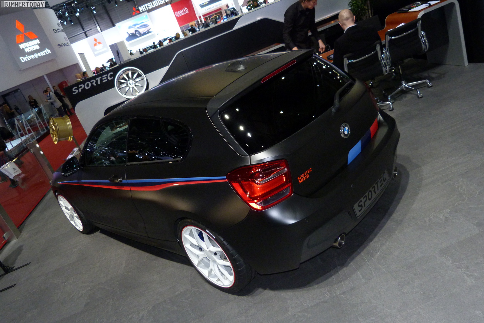 Switzerland-based tuner Sportec premiers at the 2013 Geneva Auto Show in 2013 their newest project based on the BMW M135i. Dubbed SB370, the compact sports car comes in a matte black and the racing stripes from BMW Motorsport.