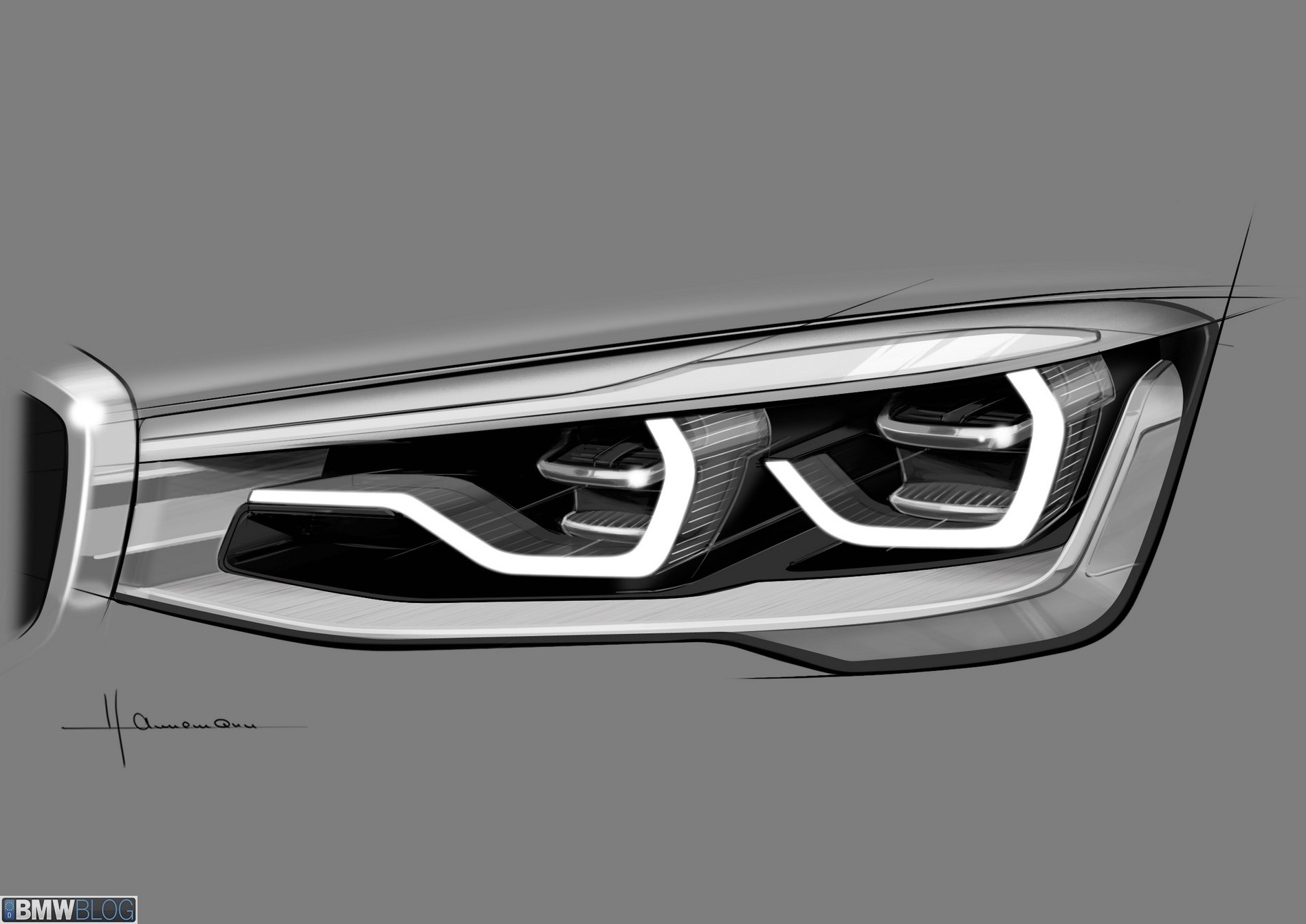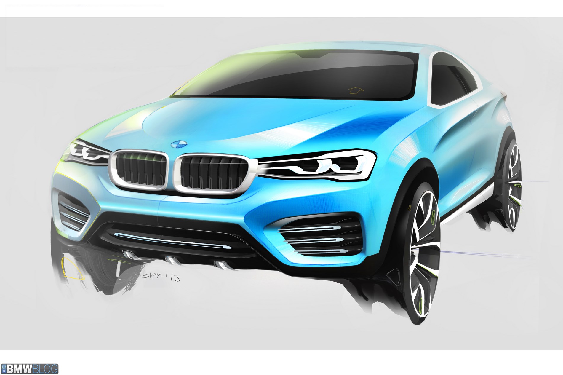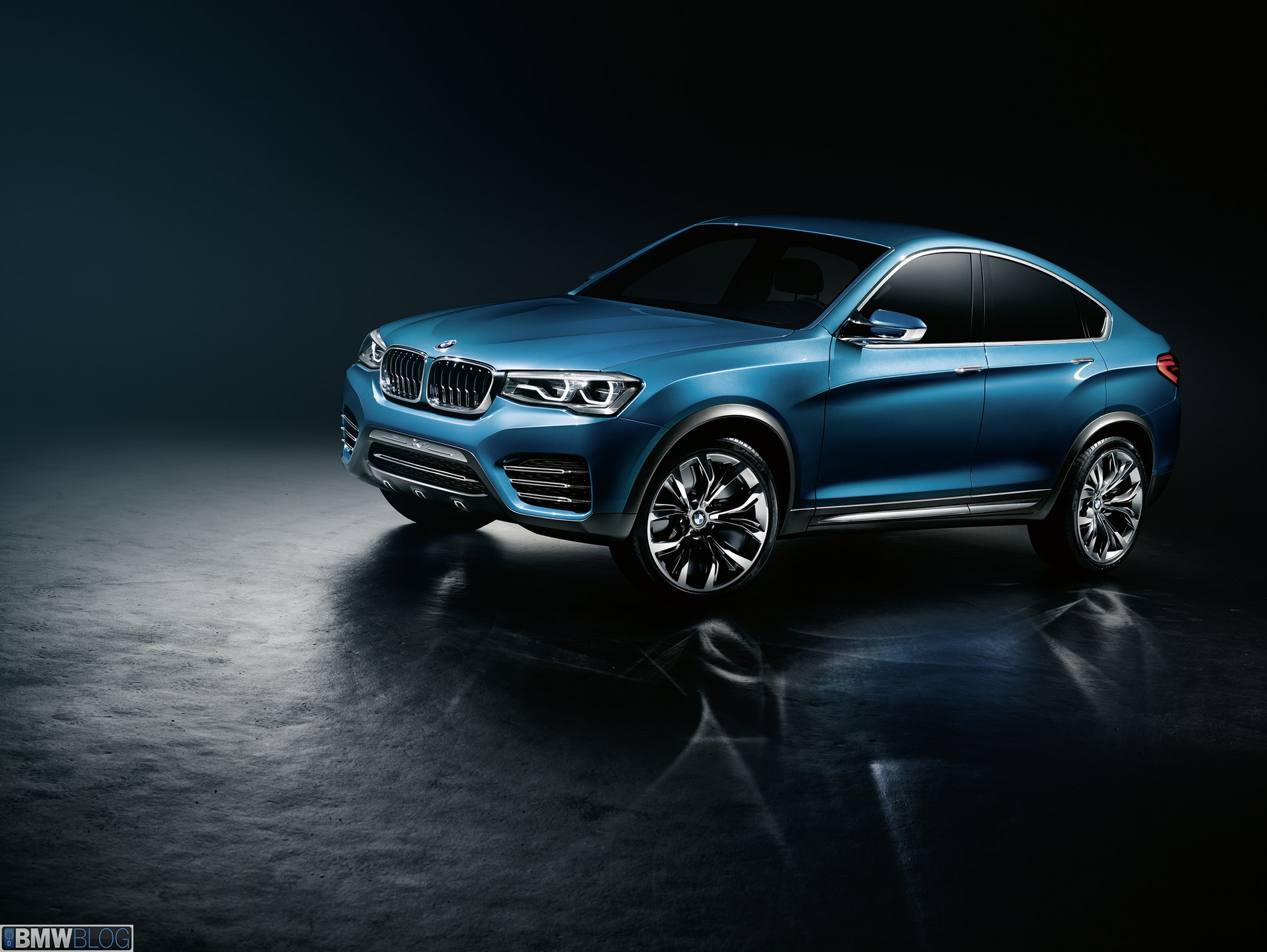 The front-end styling of the BMW Concept X4 exudes hallmark BMW dynamics and the rugged purpose and presence of a BMW SAV in equal measure. Classic BMW features such as the kidney grille and stylized twin circular head-lights give the nose a clear identity and ensure it shines out as a BMW the first time you set eyes on it. The BMW Concept X4 lavishes both these front end design icons with meticulous detail and three-dimensional depth. The large kidney grille stretches out within a solid looking surround. The high gloss frame is open to the sides and at its lower extreme, lending it an almost “floating” appearance in the center of the nose. The grille features prominently sculptured bars with ultra-stylish detailing. The hollowed out, high-gloss black bars have a milled lower third with a matt finishing, which lends the kidney structure extra visual depth. And the grille also comprises additional air apertures to ensure an increased supply of cooling air to the engine.