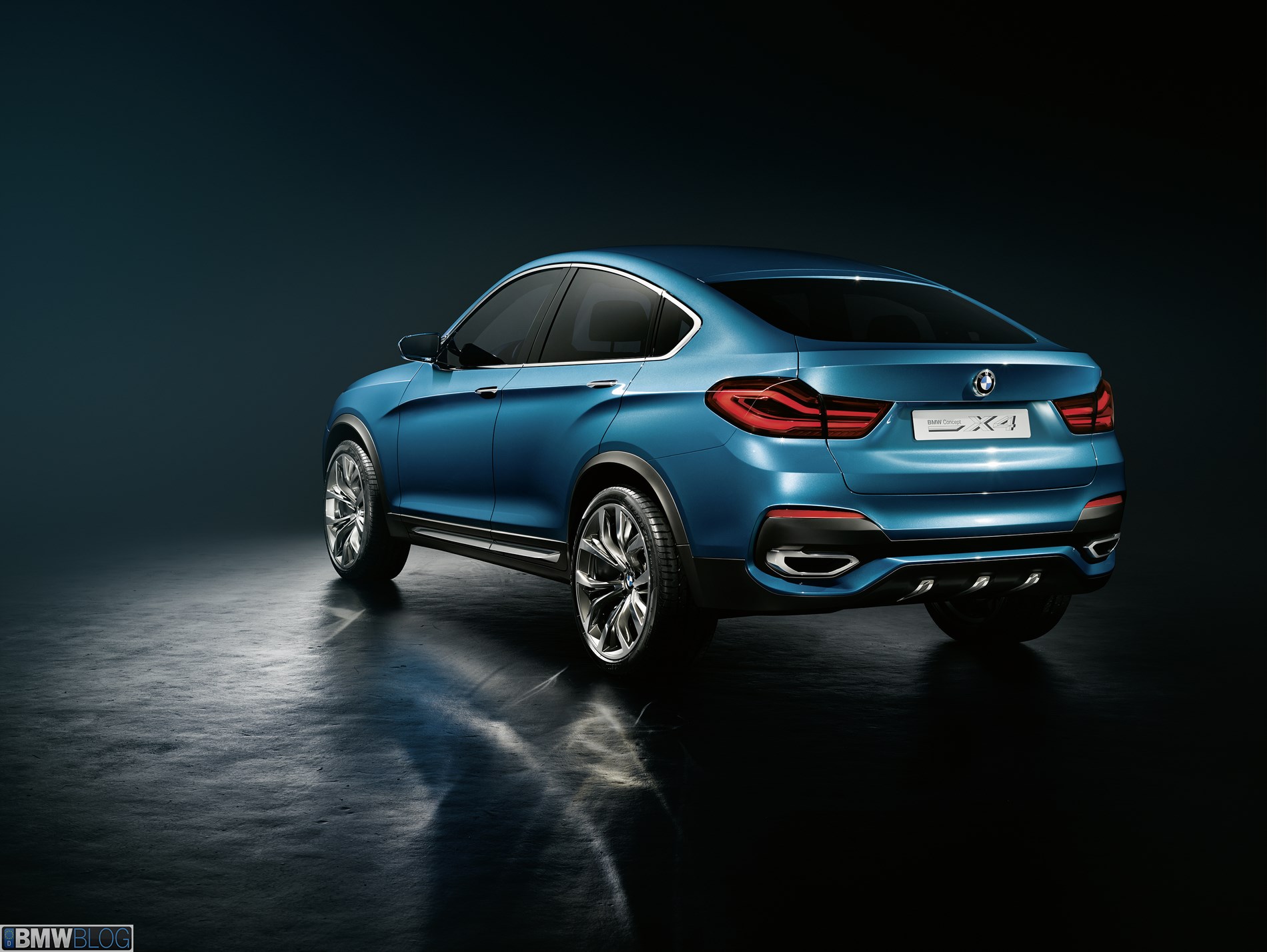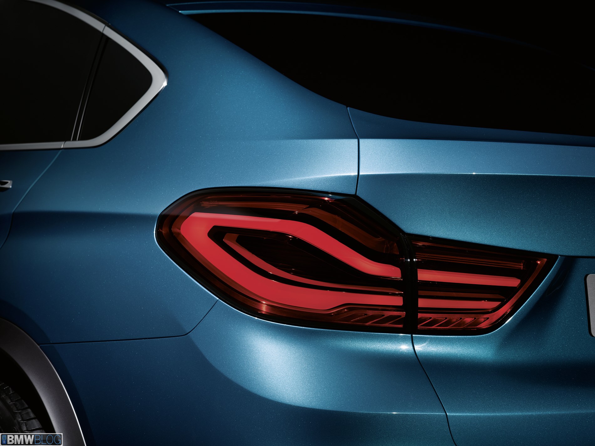 The rear of the BMW Concept X4 takes the sporting, width-accentuating elements of the front-end design and reproduces them with an emphatically horizontal flavor. The body’s lines and the slim LED tail lights positioned at the outer edges of the rear emphasize the muscular wheel arches and wide track. Below, horizontal lines split the rear visually into sections, while light surfaces re-duce the car’s visual height and underline its width.