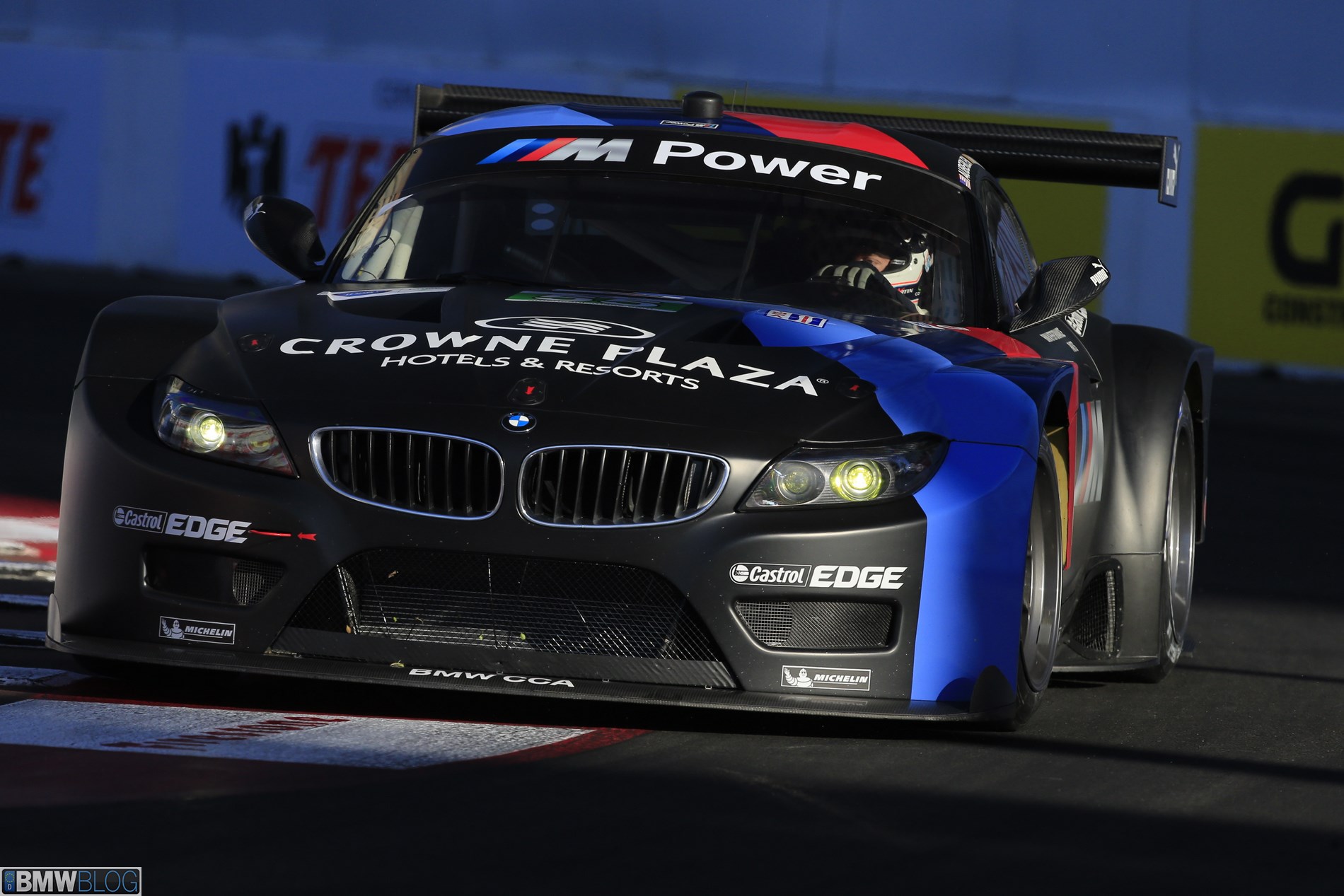 The streets of Long Beach, California continue to be the favorite stomping grounds of BMW Team RLL as they finished 1-2 in today’s American Le Mans at Long Beach race. In only the second race for the new BMW Z4 GTE, the team beat a very competitive GT class field with excellent strategy set in place during the first hour of the two-hour contest around the 1.968-mile, 11-turn temporary street circuit. BMW Team RLL has finished with at least one car on the Long Beach podium, including a win from the pole in 2011, for five consecutive years. Today’s victory puts BMW in a tie with Chevrolet at the top of the GT Class Manufacturer points. The win was also the first for the new BMW-Michelin partnership.