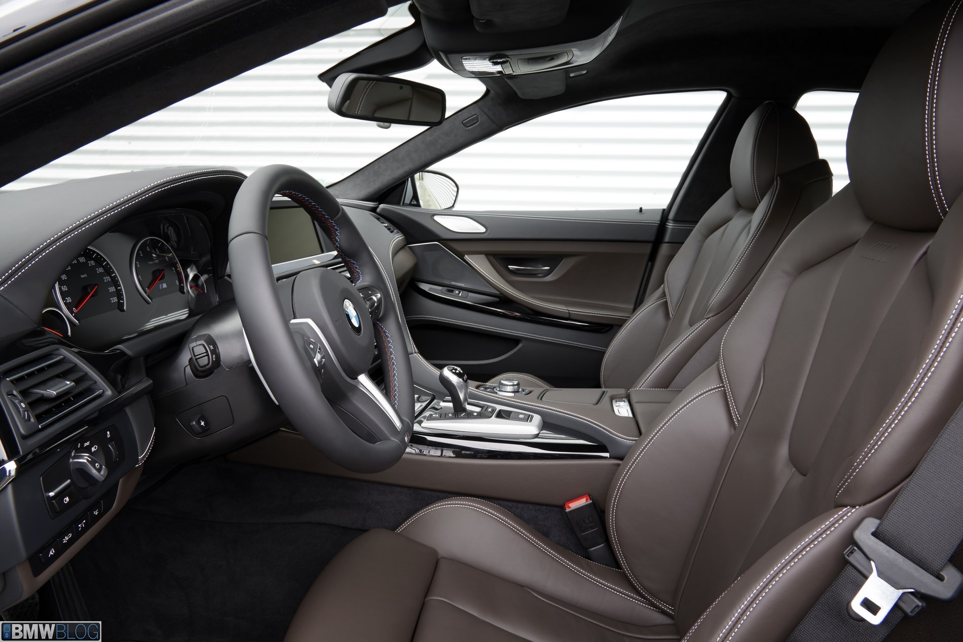 Even more so than with the regular Gran Coupe, your first hands-on contact with the M6 version is strikingly different from the start. The aluminum doors are light and, if the windows are down, open to reveal frameless cool (it’s a really striking effect – rear doors are frameless too). Step in and you drop down surprisingly low, atop firm and voluptuously sculpted seats. It already feels very, very different from an M5: much more purposeful and focused.