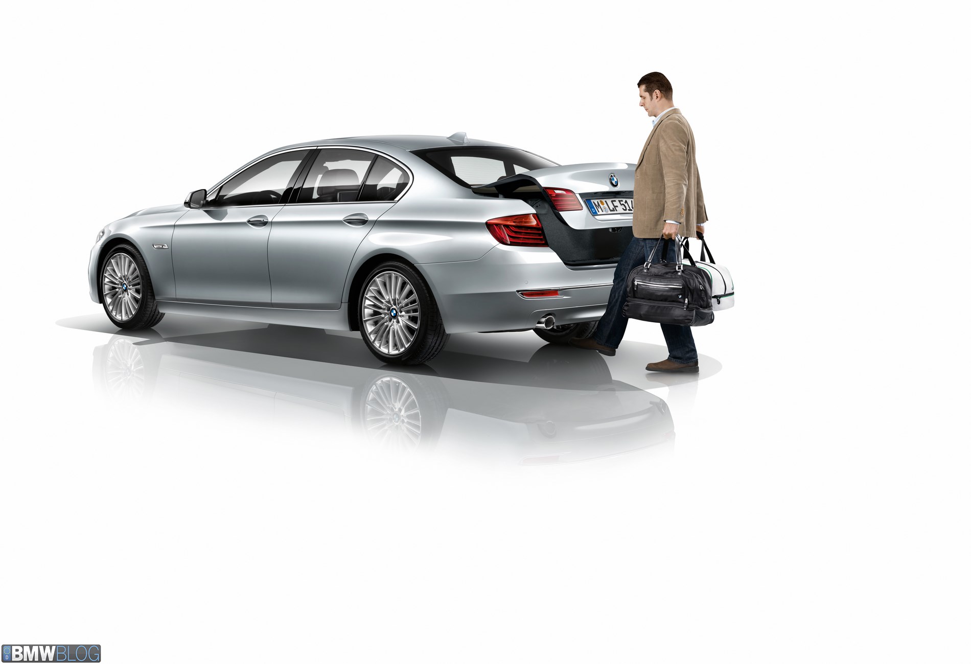 The host of innovations included on the options list and in the range of BMW ConnectedDrive technology allow the new BMW 5 Series model family to underline its standout position in the areas of connectivity, infotainment, convenience and safety. For example, the function of the optional Comfort Access system, which allows the tailgate to be opened hands-free, has been extended to include a closing mechanism, which means that a movement of the foot under the rear apron can now be used to prompt the tailgate to close as well as open. In addition, the new BMW 5 Series offers customers a new rear-seat entertainment system with tablet-style displays, a Harman Kardon Surround Sound system and a new version of the ambient light option with a facility which allows the interior lighting to be alternated in tone between orange and white.