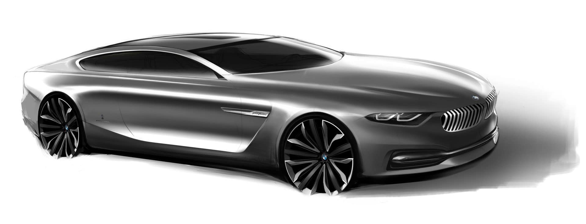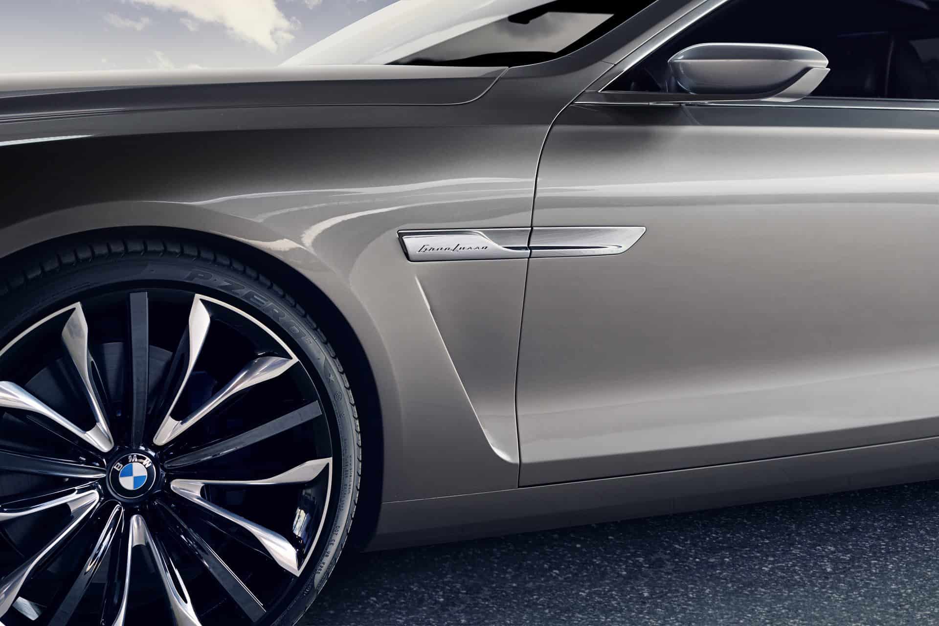 BMW Pininfarina Gran Lusso Coupé with stature and presence. Above it the long roof line flows elegantly into the rear to define the short tail end. Below the shoulder line, a striking countersweep to the roof line emanates from the Air Breather behind the front wheel. Ascending towards the rear, it lends the back section of the car a light and dynamic appearance. All the lines have been designed with keen sensitivity: as they trace their course they become stronger or weaker and, through the changing play of light and shadow, show off the surrounding surfaces to their best effect.