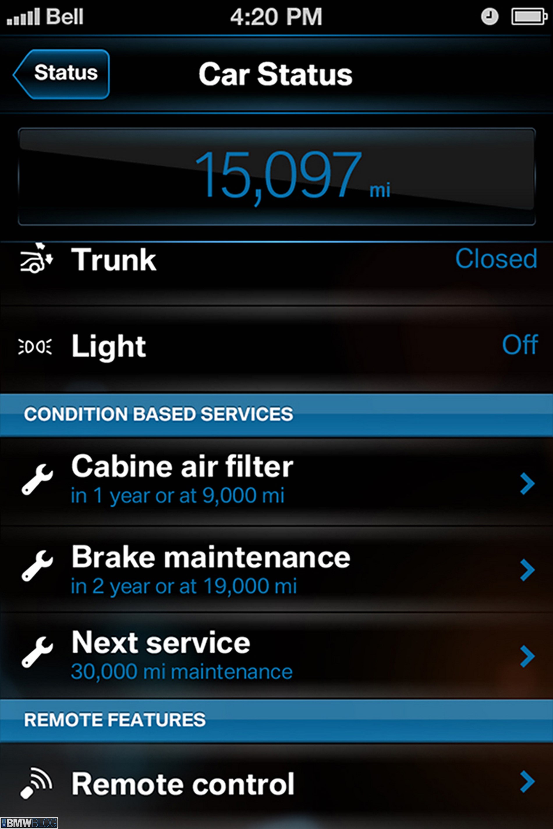 BMW i Remote app: vehicle monitoring, mobility planning and efficiency optimization.