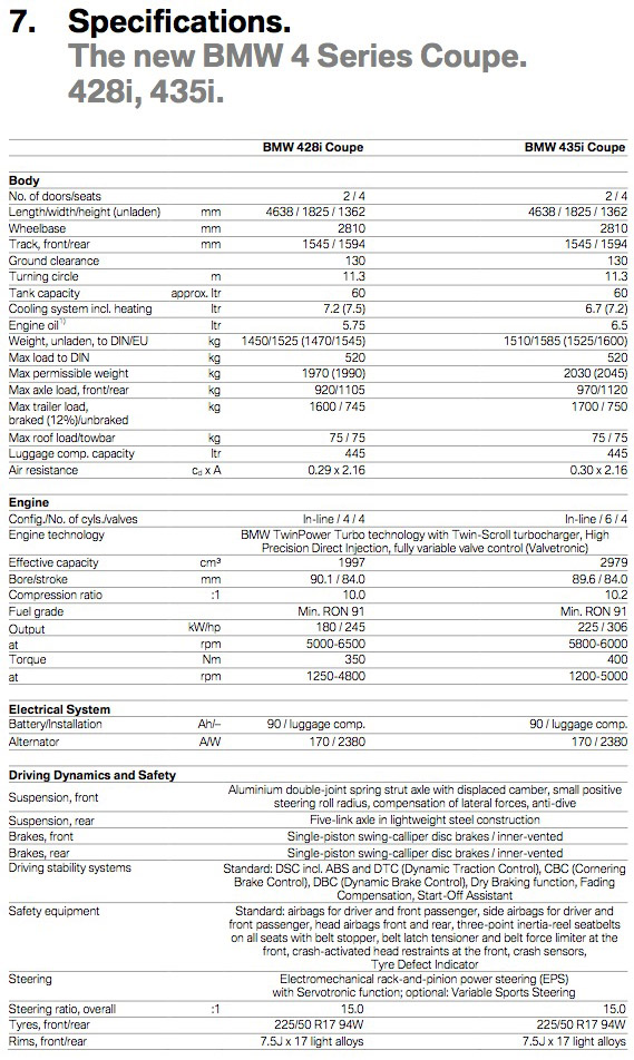 From the extremely lengthy, yet informative press release, we picked out the vital information. One thing that we love the most in the 4 Series Coupe is that despite the larger size and more equipment, the F32 4 Series Coupe is anywhere from 44 pounds (20kg) to 99 pounds (45kg) lighter than E92 3 Series Coupe.