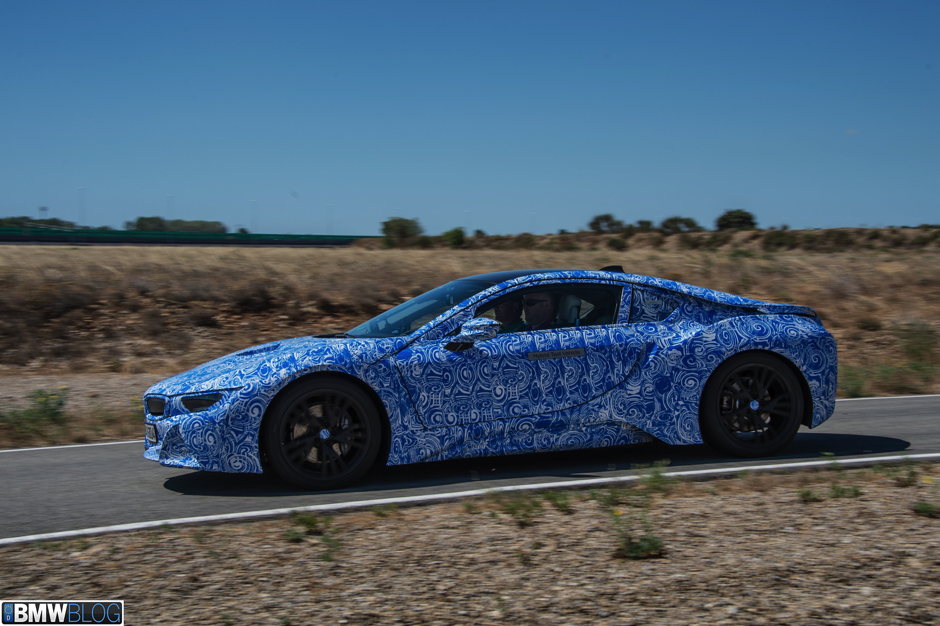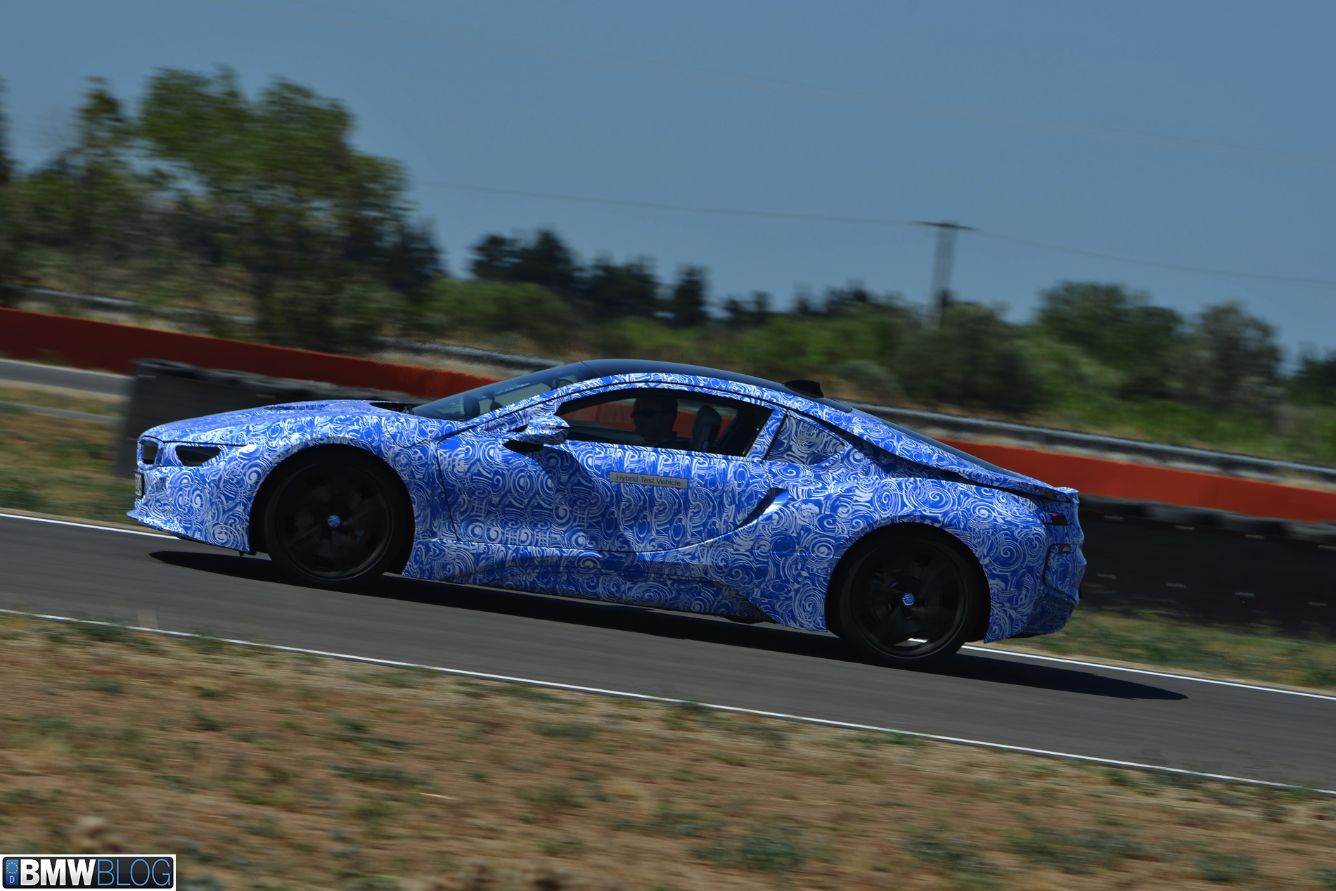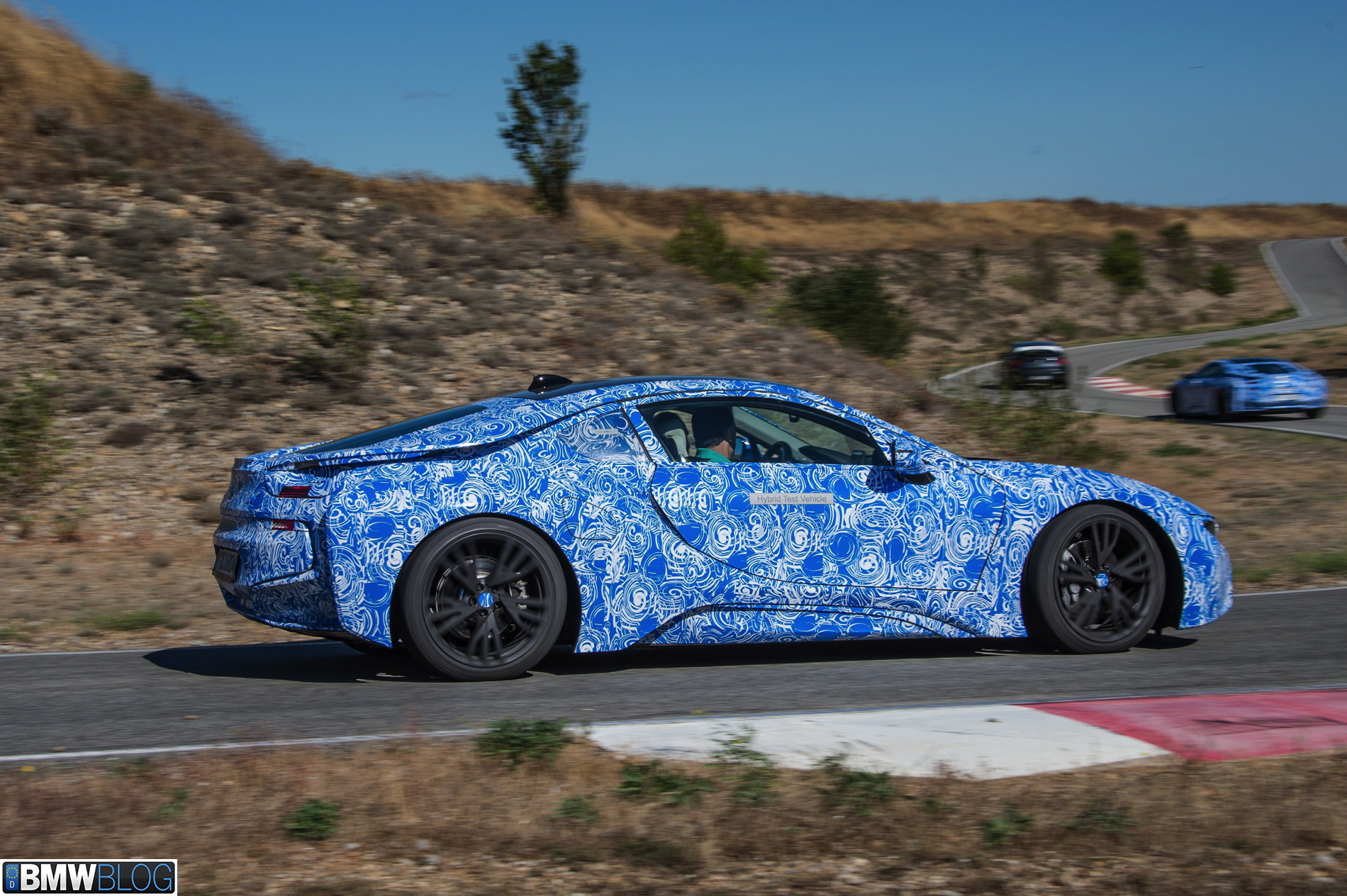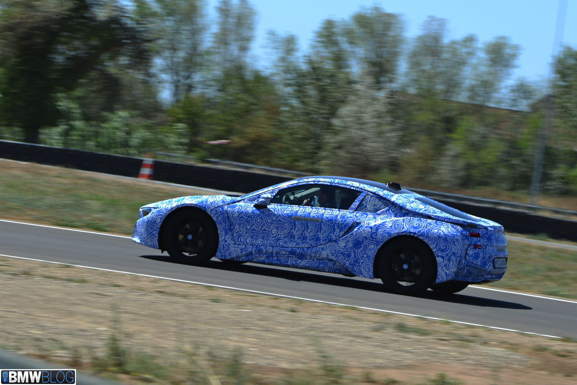 Behind those gates and with our cameras tightly kept inside our bags, we were greeted by three BMW i8 prototypes dressed up in the now iconic BMW swirl camouflage, only this time in the white-blue combination. Clearly a branding statement in regards to the BMW i colors.