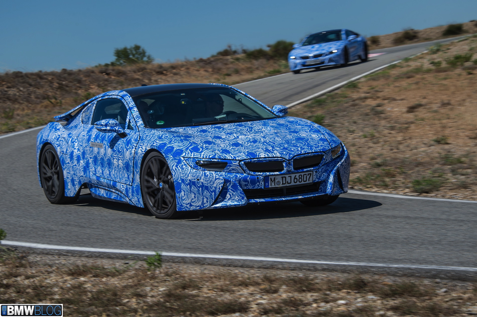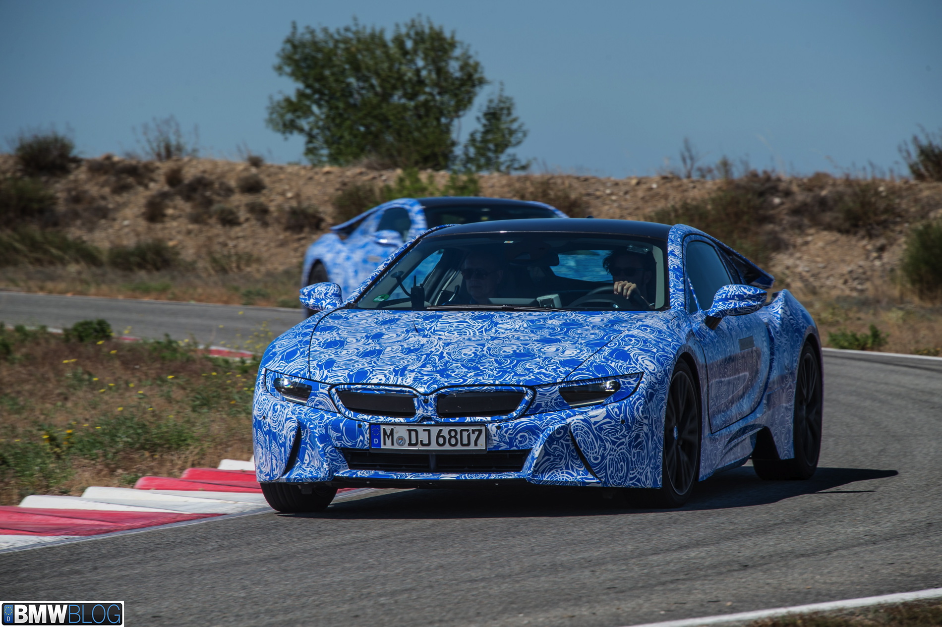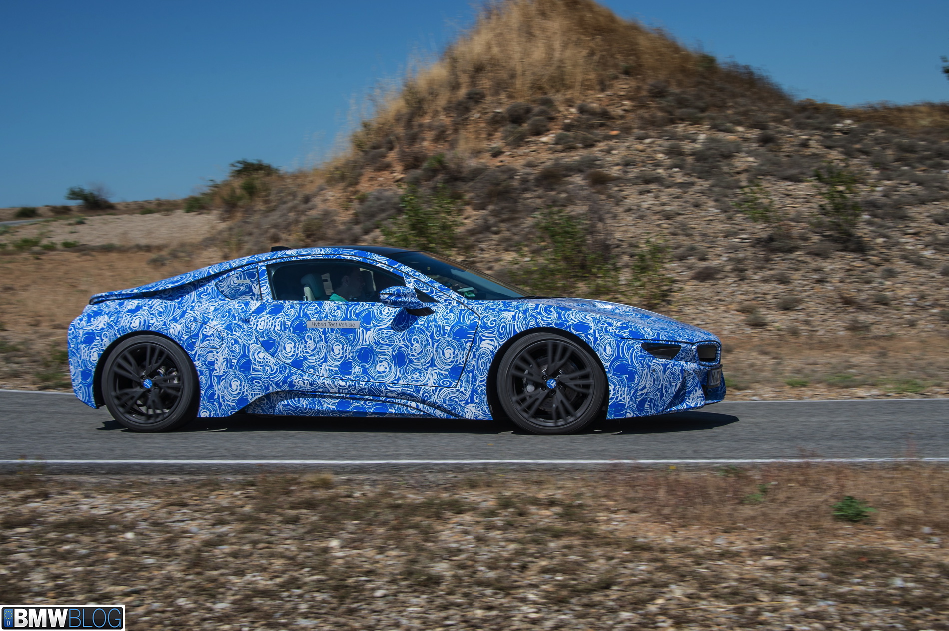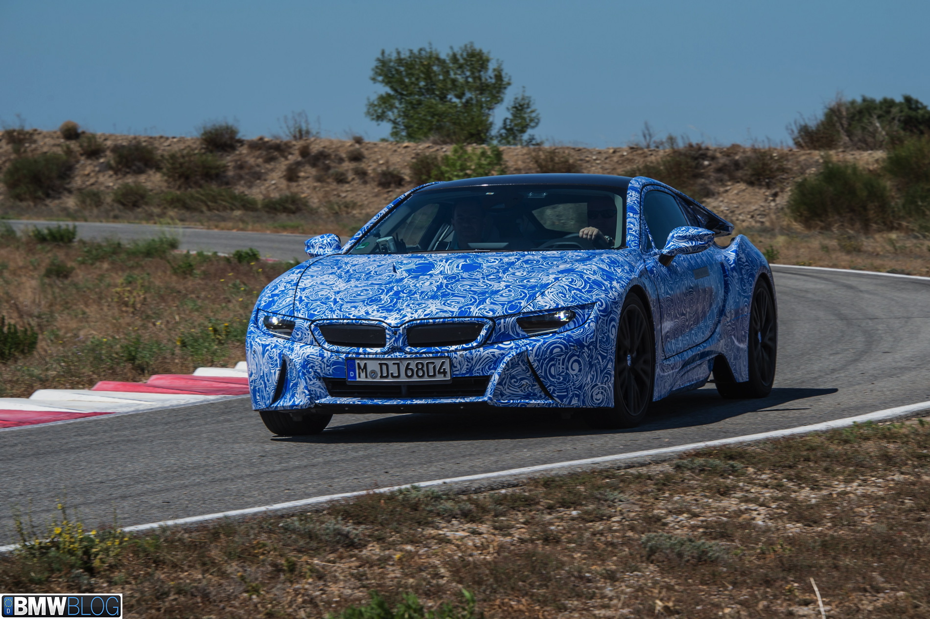 Behind those gates and with our cameras tightly kept inside our bags, we were greeted by three BMW i8 prototypes dressed up in the now iconic BMW swirl camouflage, only this time in the white-blue combination. Clearly a branding statement in regards to the BMW i colors.