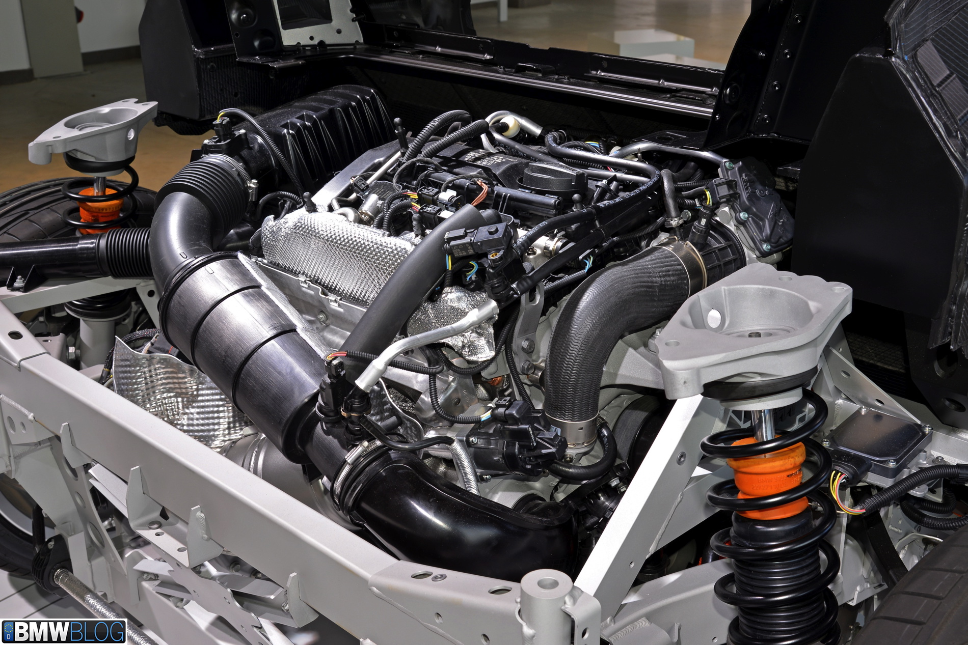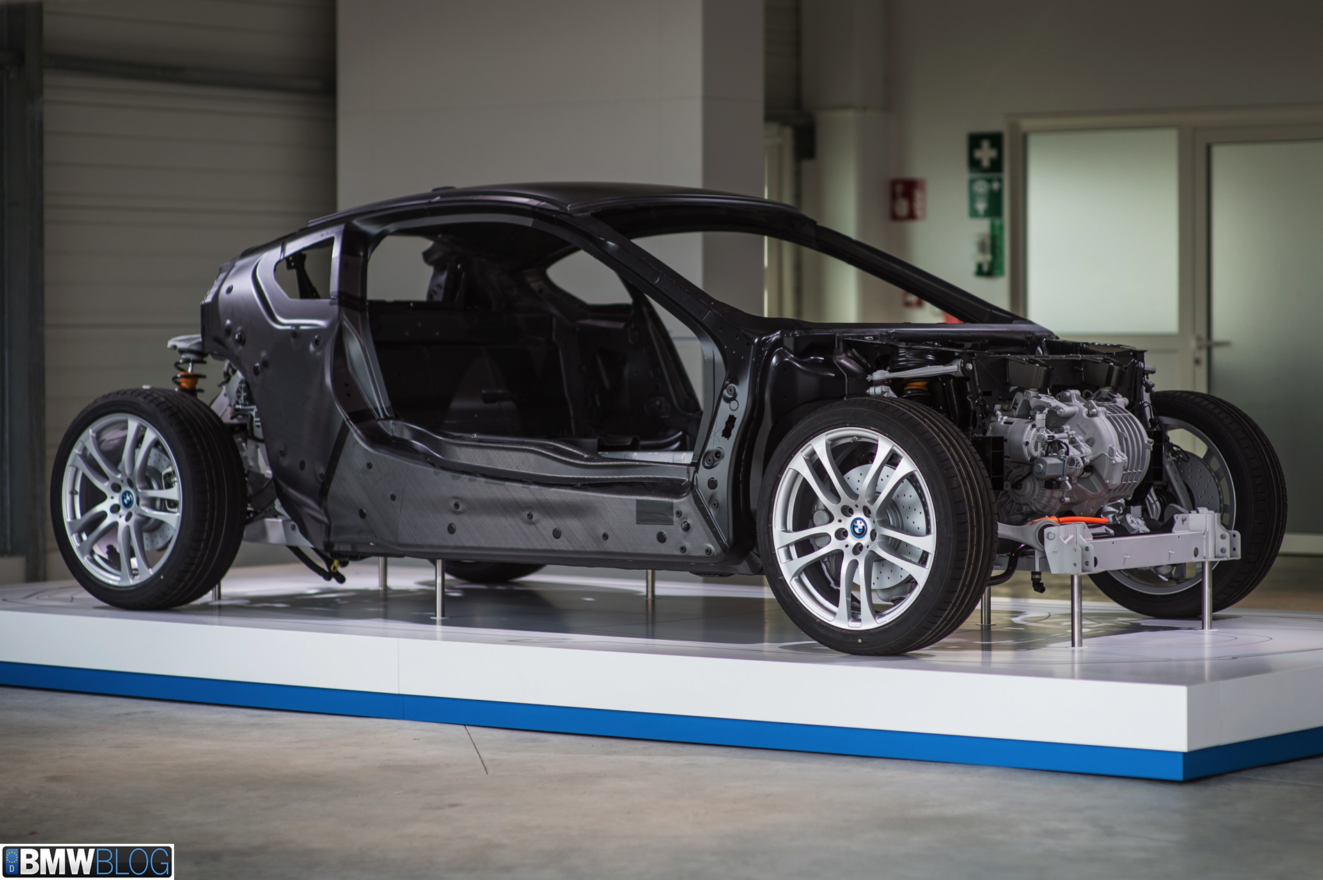 With the i8 BMW also introduces into production their new B38 1.5 liter three-cylinder petrol engine. We have previously tested the “baby-six” in a 1 Series Hatchback and we were quite impressed with its abilities. The little but potent combustion engine is transversely mounted behind the cabin and delivers 228 horsepower and 236 lb ft-of torque. That’s 152 hp per liter, an impressive figure by any standards. BMW engineers confirmed that there is room for a bit more power, but the current level delivers the best efficiency.