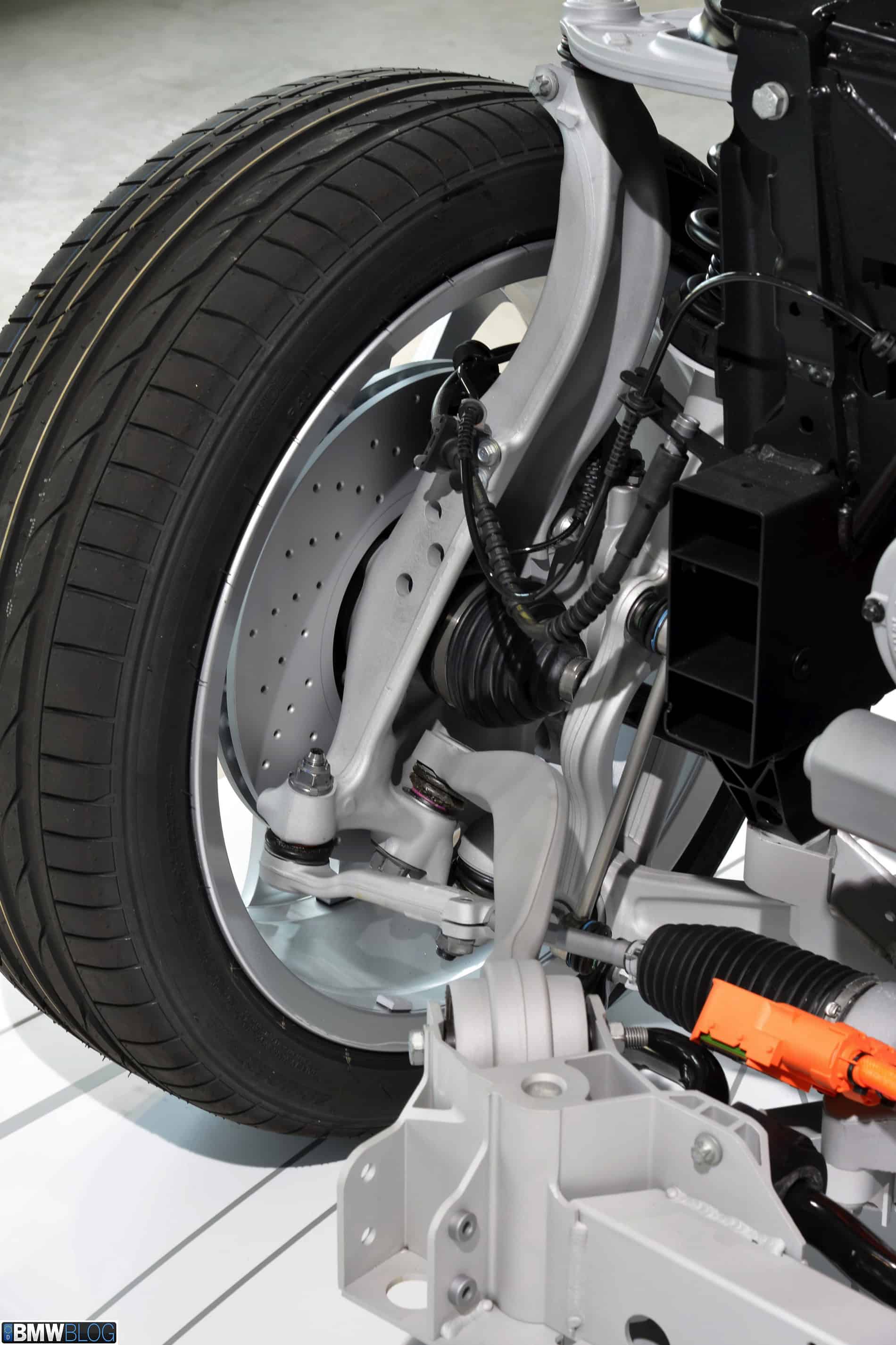 At the front, but closer to the wheels, BMW placed an electric motor developing 129 horsepower and 184 lb ft-of torque. This is the same electric motor as in the BMW i3 but with less power (170 hp in the BMW i3). The electric motor drives the front wheels via a GKN two-speed automatic gearbox which always run in first gear while in eDrive mode but switches directly to second gear in the mixed modes. The energy is drawn from a 5 kWh lithium-ion pack placed along the central tunnel right behind the electric motor.