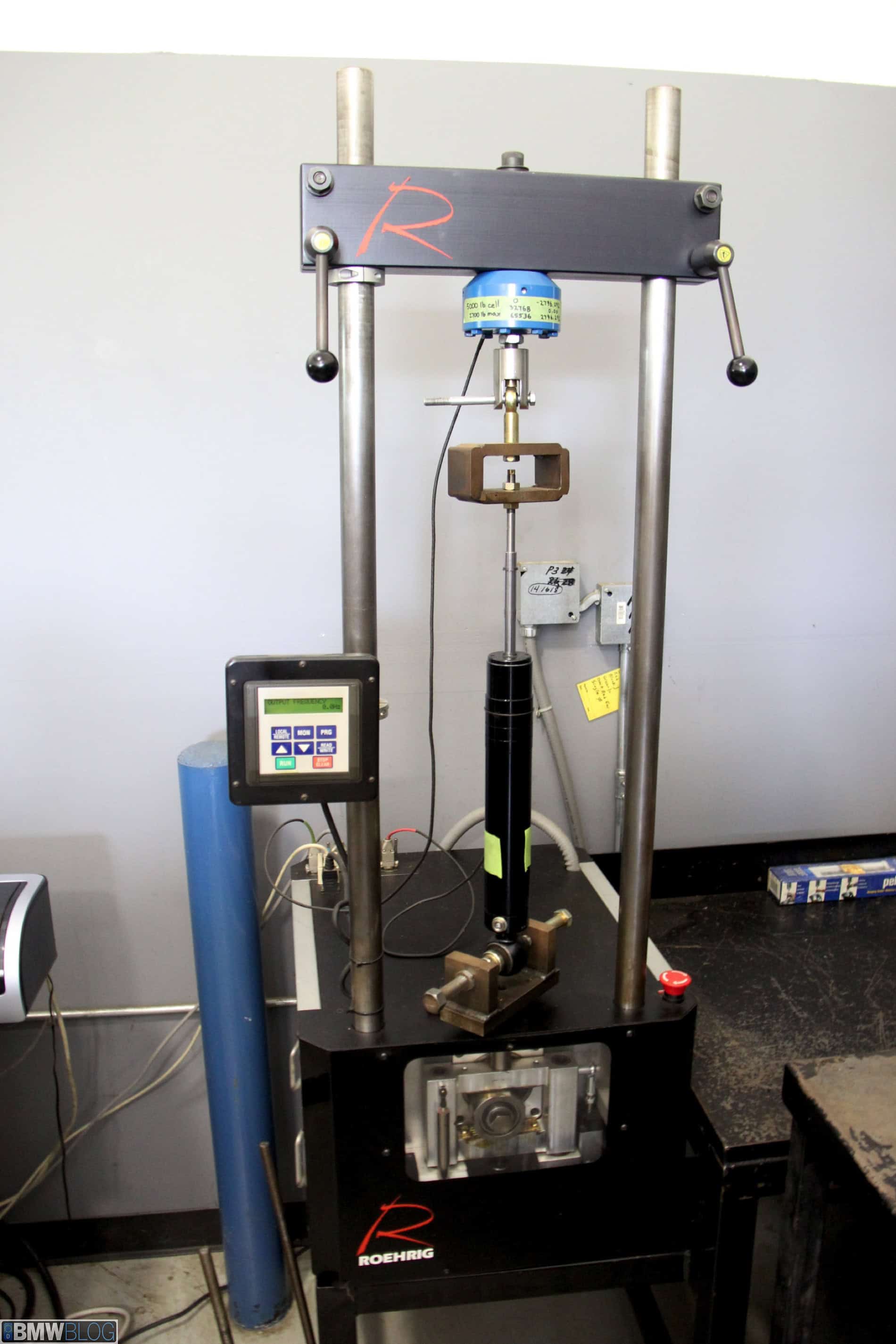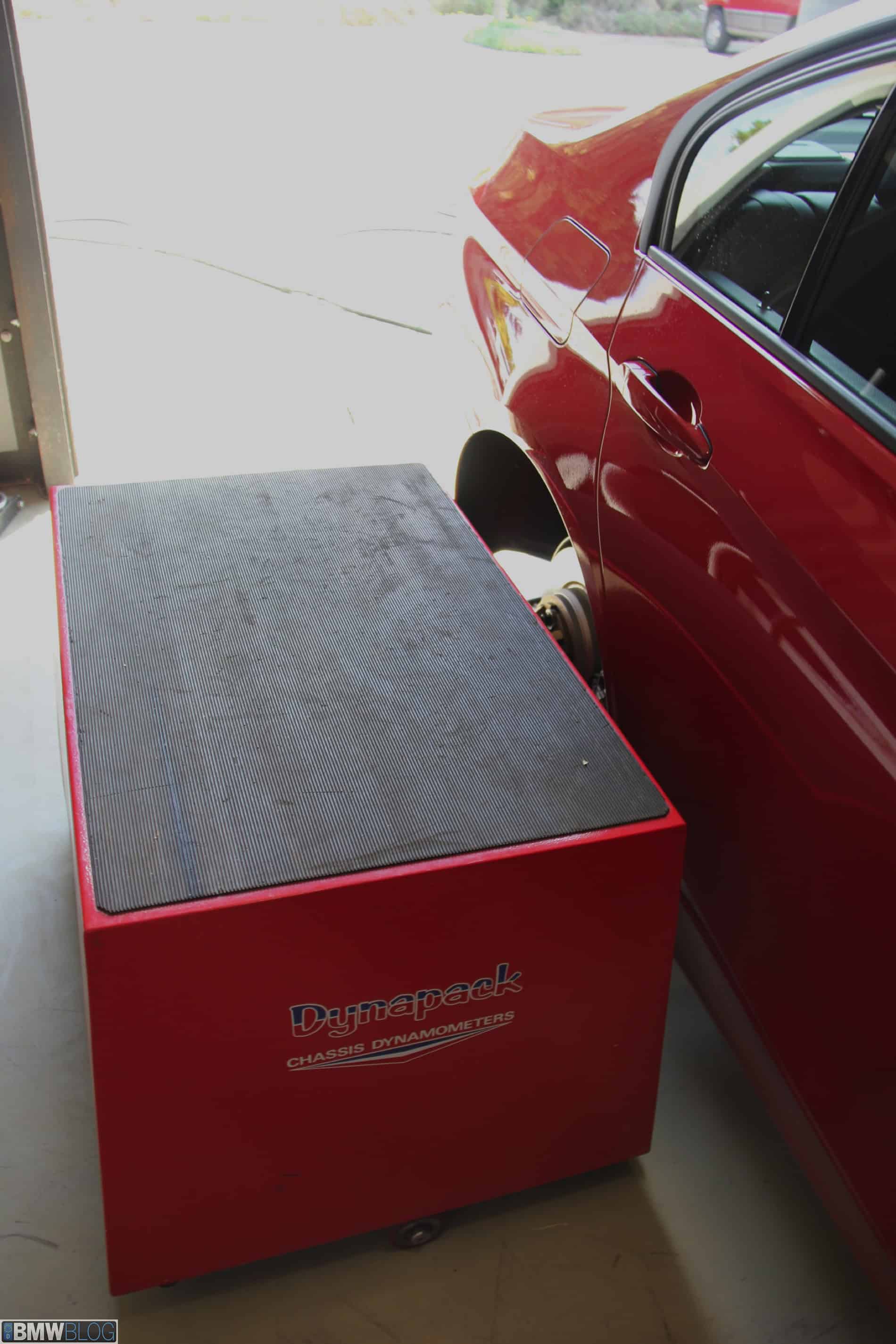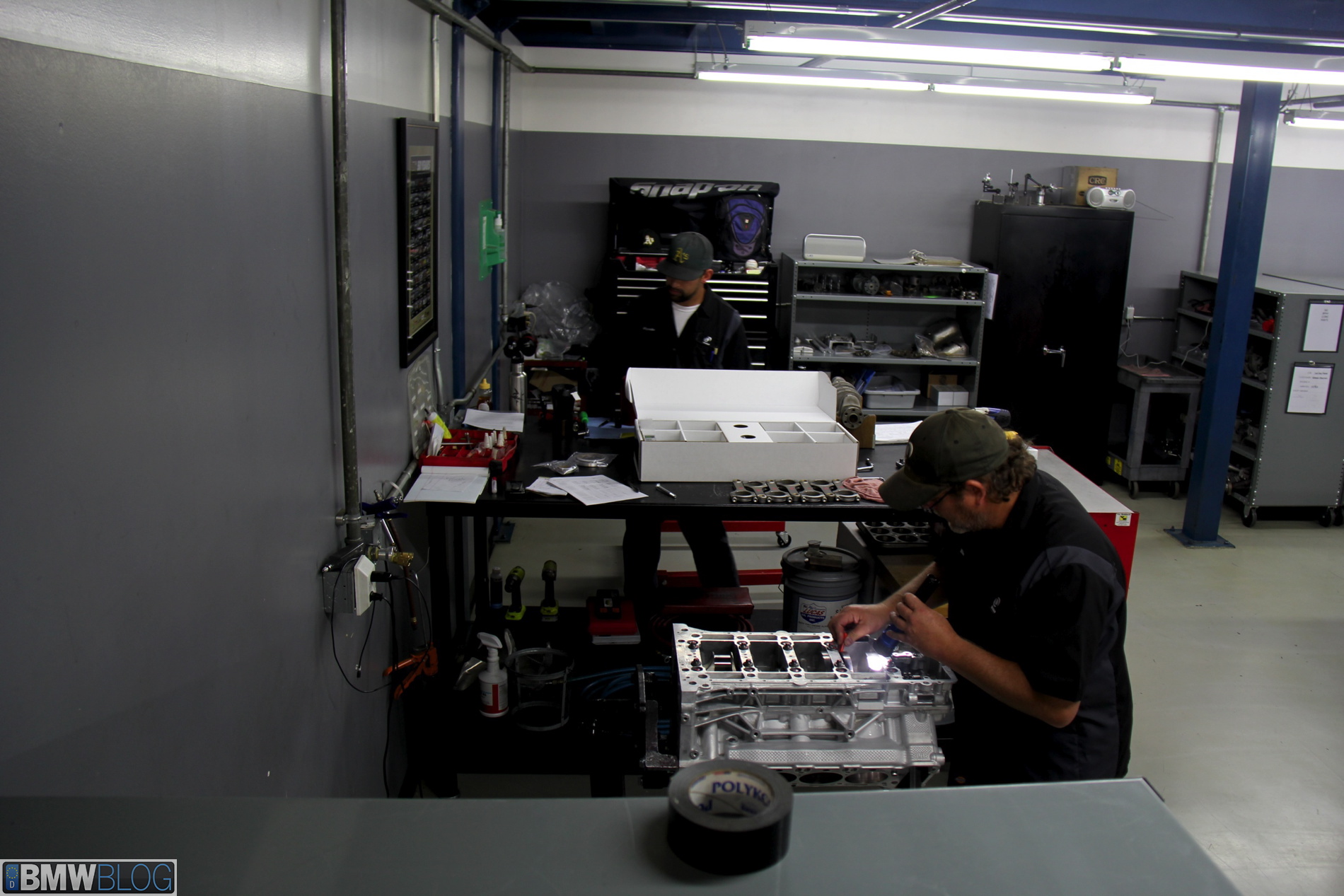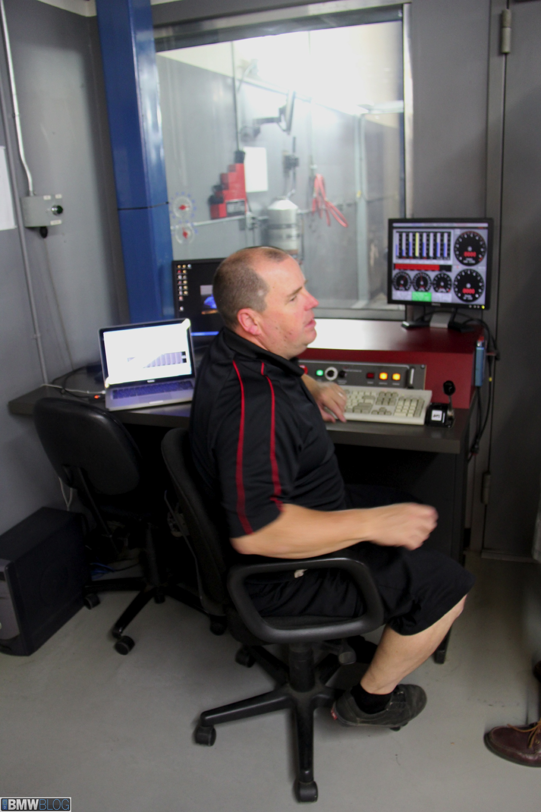 In the 33,000 sq feet facility they also manufactures racing and street engines. They have a wicked engine dyno they demo’d for us with Rolex motor that had some cool blue valve covers. DINAN uses a special car dyno that actually bolts to the hubs! DINAN has a huge fan that can force 75mph wind into the front of the car, far exceeding the typical 30 mph fan most dynos have. According to Dinan, if the BMW gets too hot on the dyno, the software will retard the timing and you wont get accurate results.