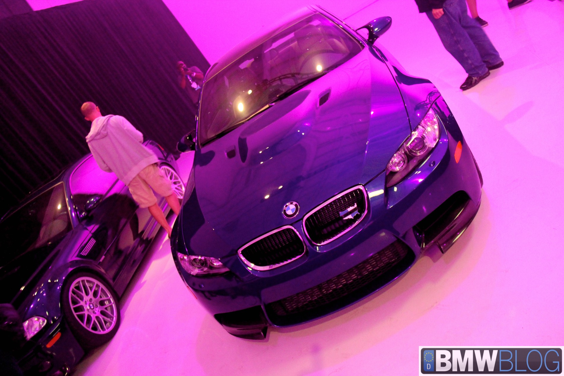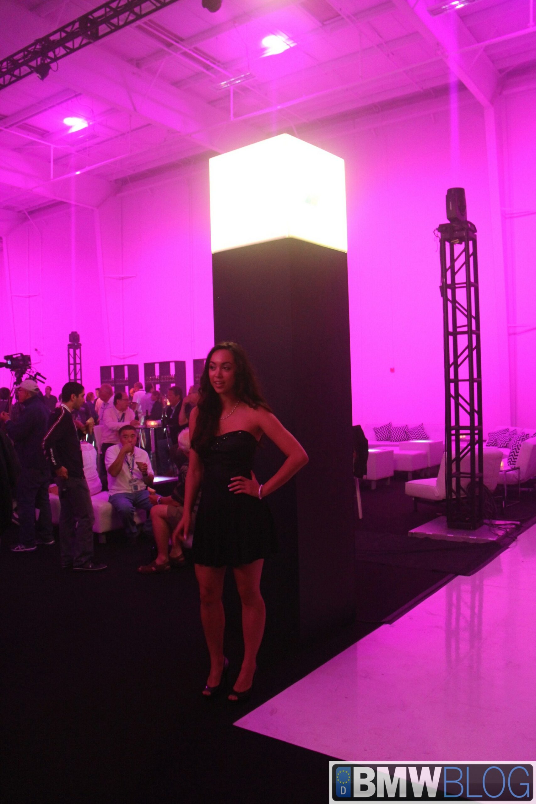 My money was that we were going to the local BMW dealer as our secret location. Wrong! We were bussed off to an airplane hanger with million dollar private jets just outside. The hanger looked like it had been turned into a club, complete with a killer DJ spinning club music, fog machines, stage lighting, a bar, couches, gorgeous models and each generation of M3 on display.