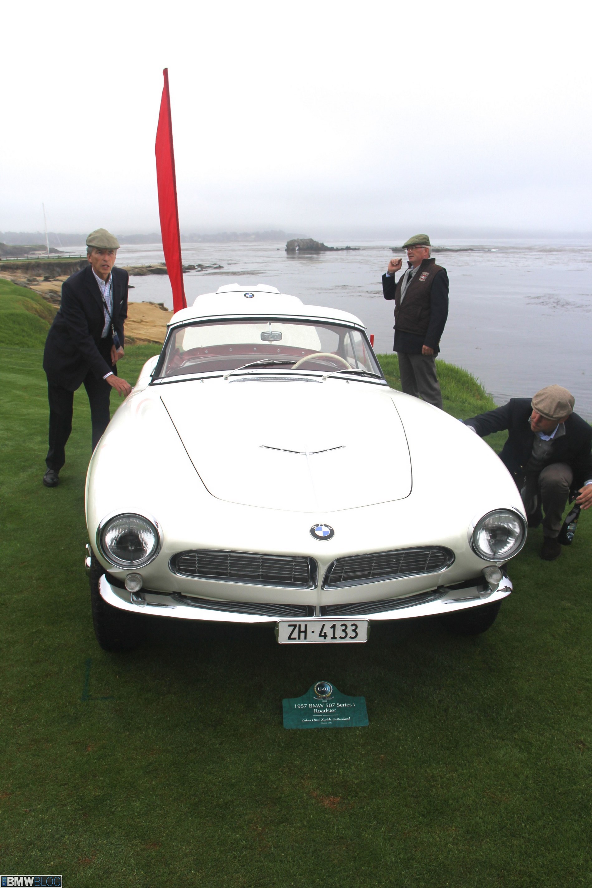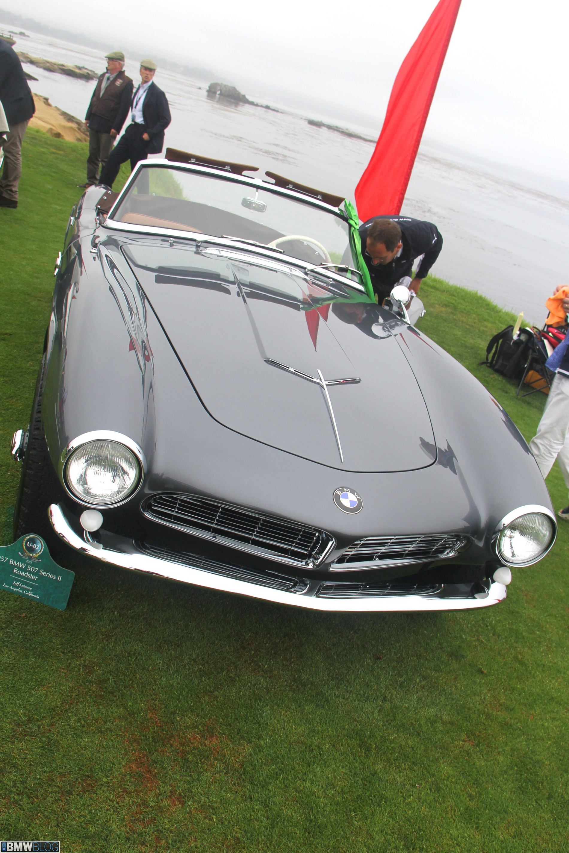 BMWBLOG got there early to see the cars being placed on the 18th fairway. The 507s were on a prominent location along the west edge with the ocean directly behind them. The morning was challenging as it was cool and the thick fog kept 507 car takers busy wiping the moisture off. BMW Classic brought a red 1958 3200, a nice and unique variant of a 507. The Blue 507 was a local Malibu car that has been owned by the same owner for the last 20 years. It was also the shows winner in the 507 category. Fascinating to think that one of the 507s was brought in from Switzerland and one from Germany.