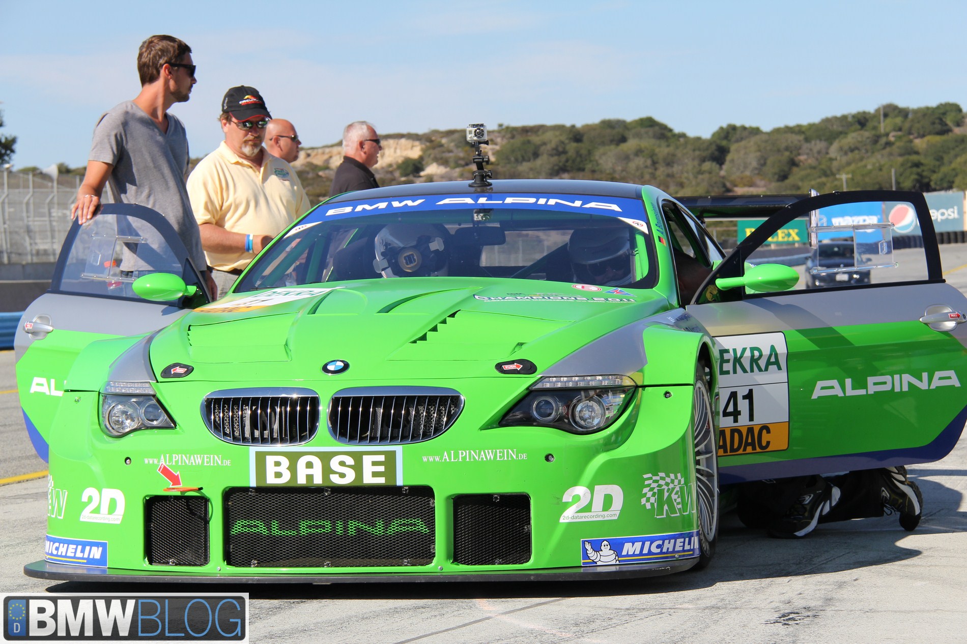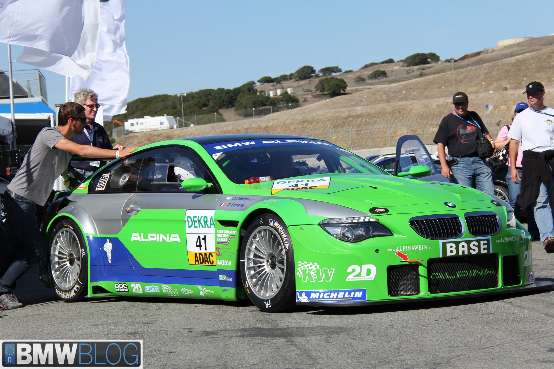 ALPINA made a 6 Series race car that they brought to Laguna Seca. It was their intention to show that they make also very good cars for racing after a 20 year hiatus. ALPINA made a wicked fast B6 GT3 to beat the 911, Lamborghini and Dodge Viper. The German engineers liked the 6 Series because it has a very long wheelbase making it stable at high speed. The car was first raced in 2009 and they had four wins in the first season.