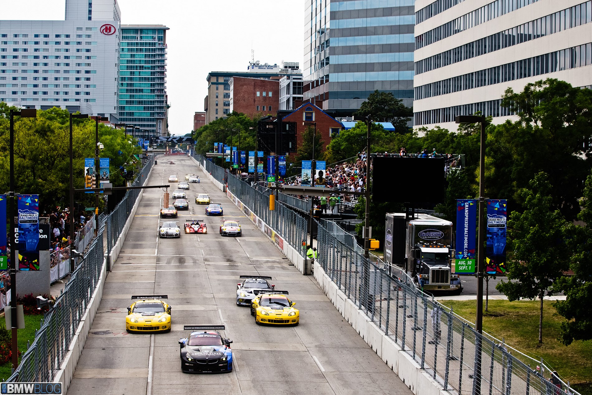 BMW Team RLL finished third and fourth in today’s American Le Mans Series Grand Prix of Baltimore that will go into the record books as the shortest race in ALMS history due to a crash on the first lap that cost the event half of its duration.