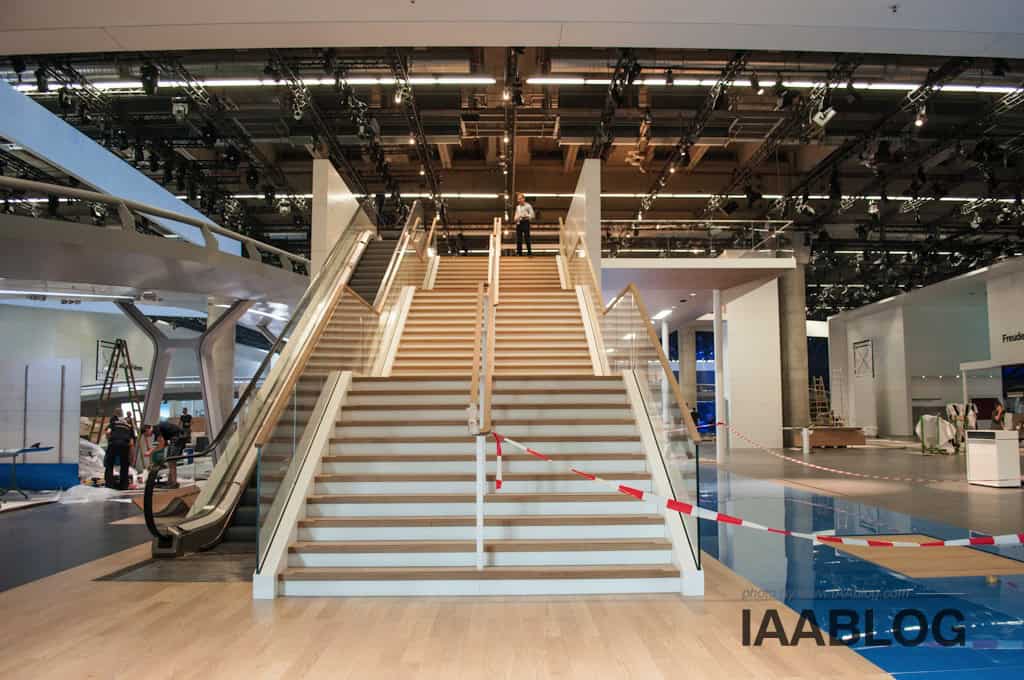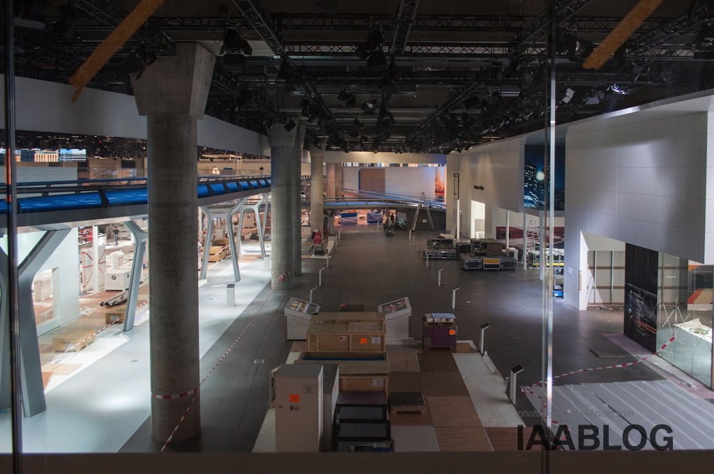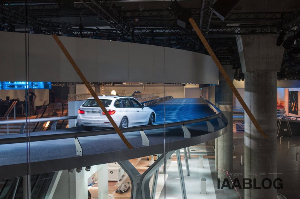 As IAABlog reports, the construction is still in progress but even at this stage in the process it looks impressive. The core feature of the BMW stand is the suspended track which is 280 meters long and runs parallel to the main visitor area. Two cars can run in parallel if needed, nearly 50cm away from each other. There will be a total of twenty four cars running on the track, from the new BMW i3 to the M supercars.