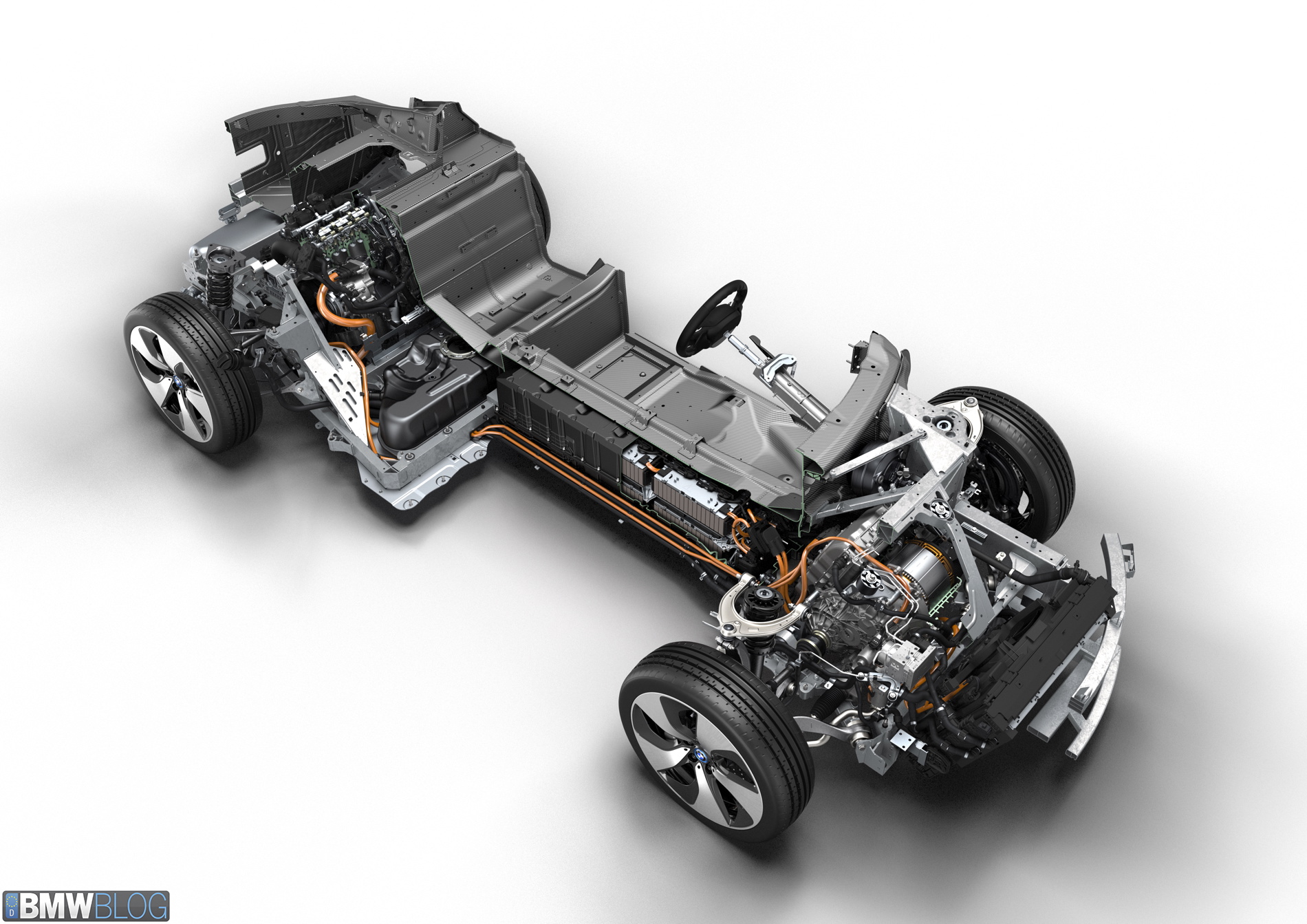 The i8 can literally be called a ‘bimotore’, two-motor, echoing images from the past like Ferrari’s 1935 Alfa Romeo Grand Prix car and all those crazy multi-motor drag racing cars built during the NHRA ‘fuel’ ban. The problem is how do you get decent handling – and more importantly how do you keep the two separated drivetrains in sync.